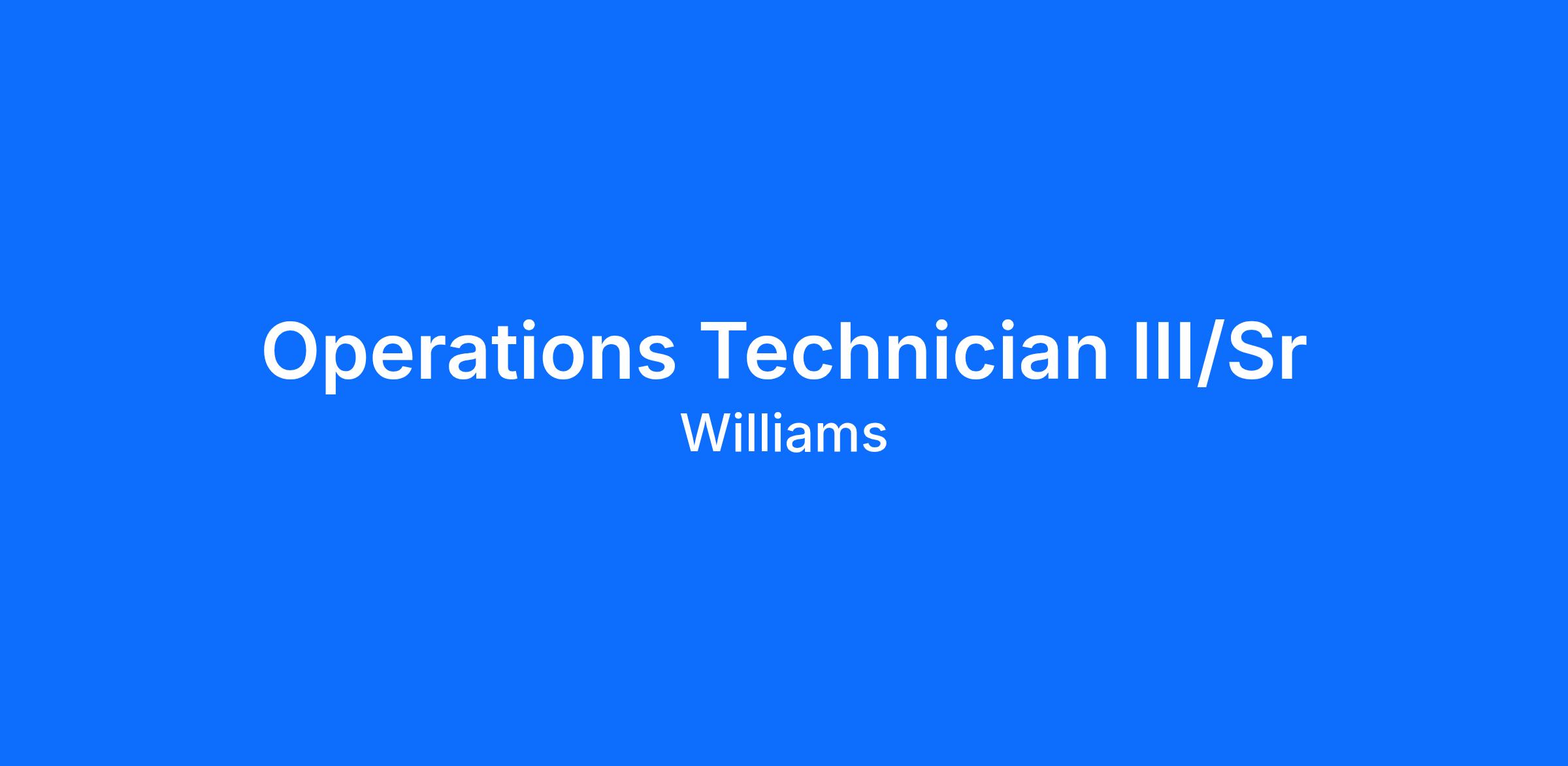 Williams is committed to creating a diverse and inclusive environment and is proud to be an equal opportunity employer. All qualified applicants will receive consideration for employment without regard to race, color, religion, sex, sexual orientation, gender identity and expression, national origin, age, marital status, disability, veteran status, genetic information or any other basis protected under applicable discrimination law.