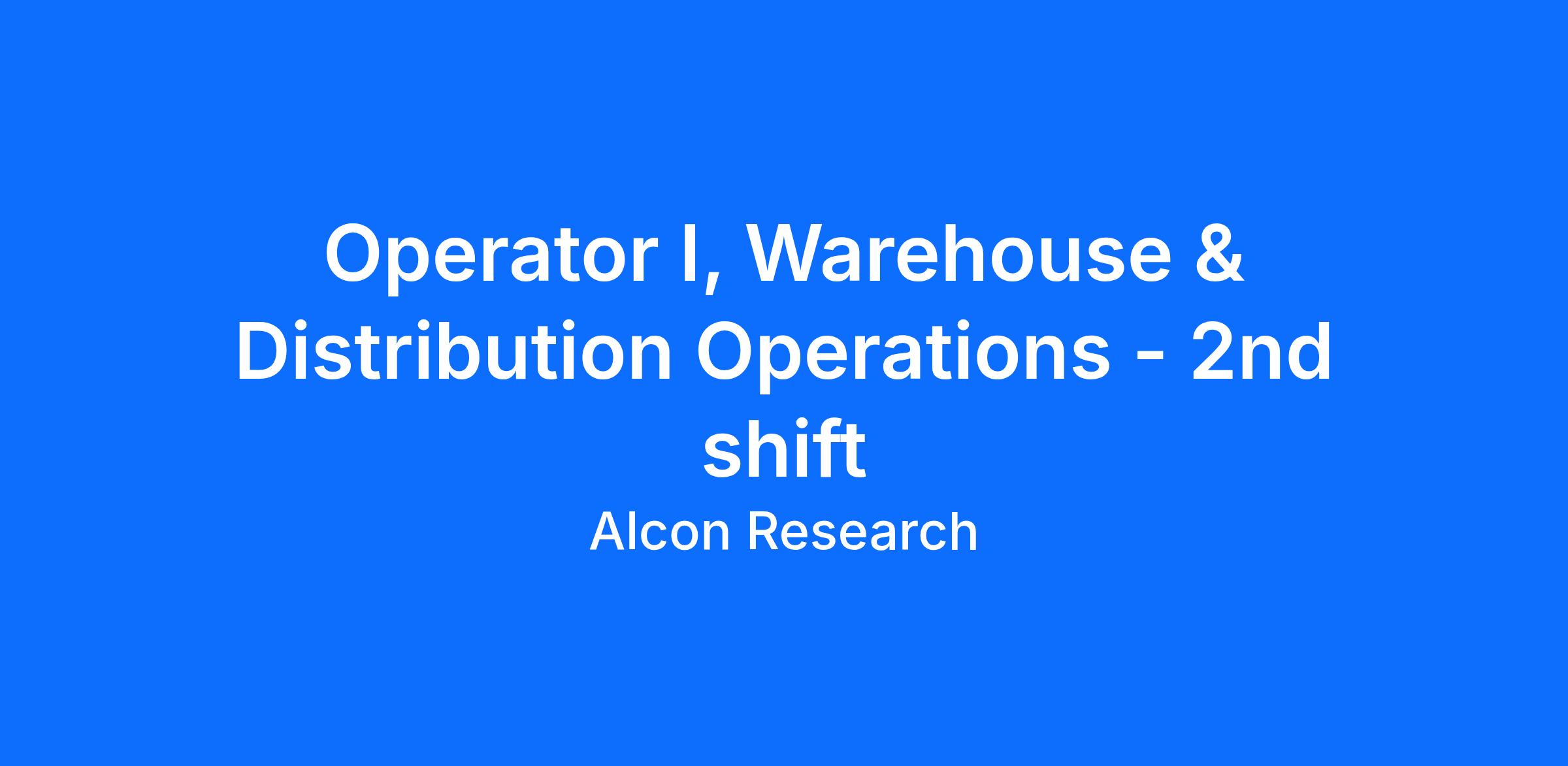 This role is part of Alcon's Supply Chain function, a team that manages the logistics, inventory management, and supply chain analytics for Alcon's industry leading products to ensure products are delivered efficiently and effectively so that people can see brilliantly.