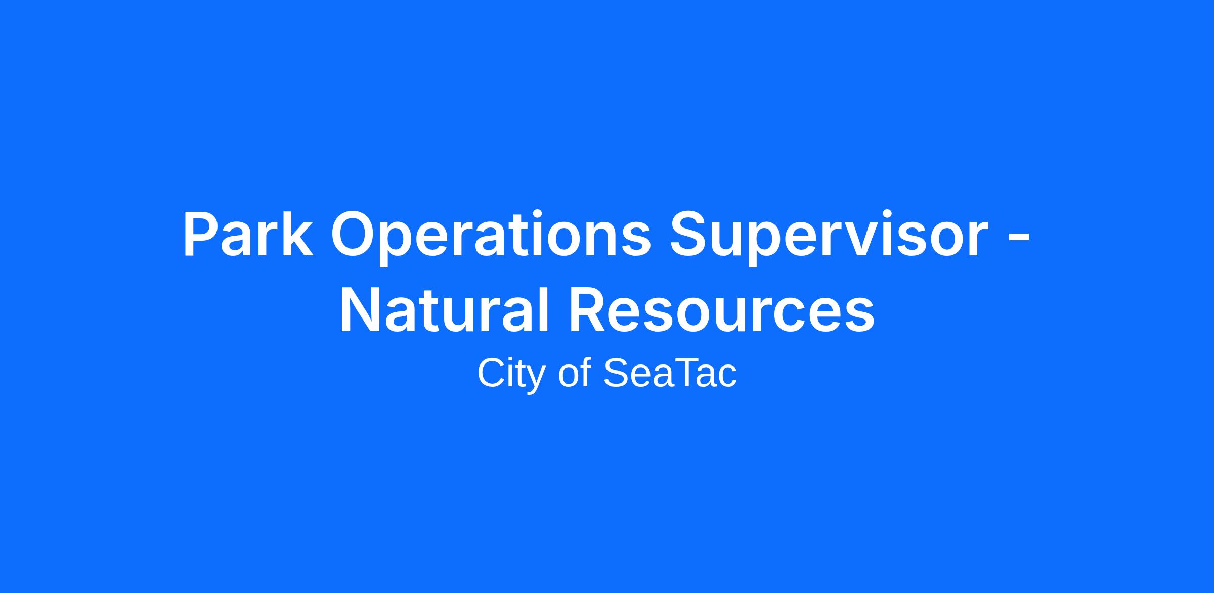 Reporting to the Deputy Parks and Recreation Director, this position leads the Parks Maintenance and Natural Resources Division, overseeing the care, preservation, and enhancement of SeaTac’s parks, trails, forests, and natural areas. This position is one of two supervisory roles within the Parks Operations Division; this supervisor focuses on Natural Resources and operations, while the second supervisor oversees Facility Rentals and related operational functions.