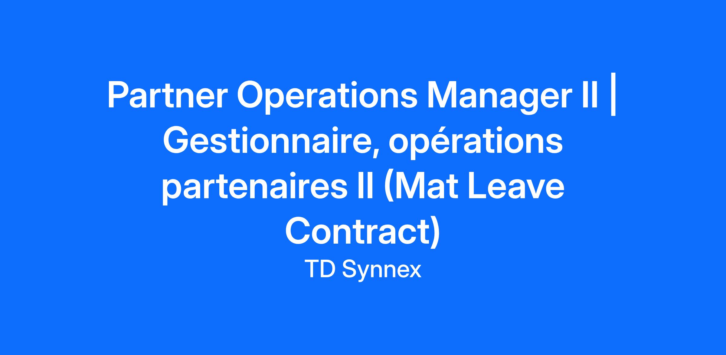À titre de Partner Operations Manager II (Gestionnaire, opérations partenaires II), vous êtes la personne-ressource pour le soutien aux programmes fournisseurs et la gestion du cycle de vie. Vos principales responsabilités incluent le soutien aux clients pour la tarification complexe, l’assurance qualité auprès des équipes et/ou l’enregistrement des transactions (deal registration). Vous orientez également les clients vers la bonne équipe afin d’assurer une couverture et un suivi satisfaisants.