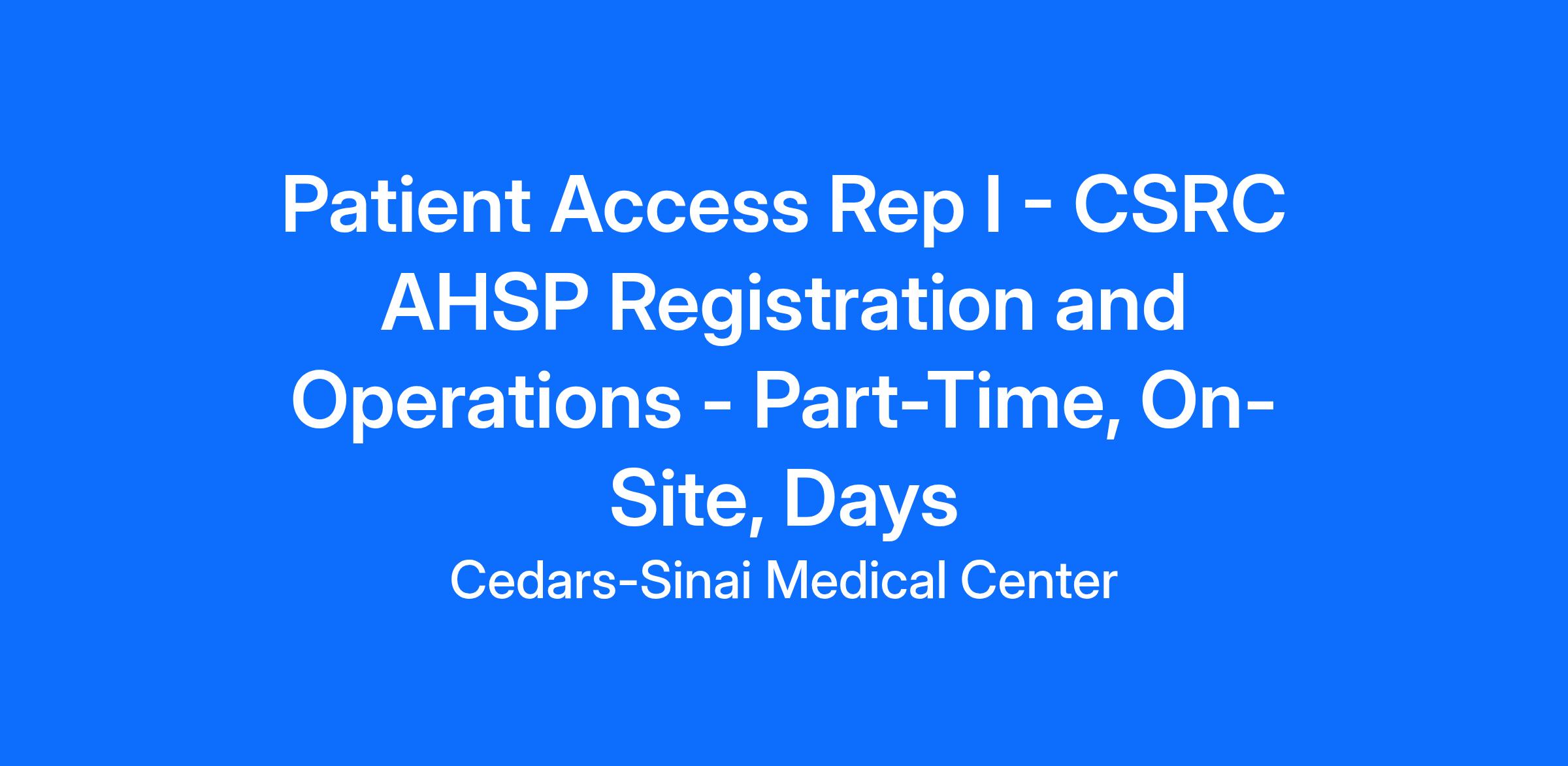 Patient Access Representatives are responsible for providing patients with a welcoming experience, while facilitating patient's access to care. The Patient Access Representative I (PAR I) performs a variety of Patient Access activities for patients throughout the Medical Center for Inpatient, Outpatient and/or Emergency Services. The Patient Access Representatives are cross trained to support roles and responsibilities throughout Patient Access, Scheduling, Pre-Registration, Financial Clearance, Referrals, Authorizations, Financial Counseling, and Patient Arrival & Registration. The Patient Access Representative has a thorough knowledge and understanding of insurance policies and procedures to determine insurance eligibility, benefits, and authorization requirements, Third Party Liability (TPL), Medi-Cal / Medicare eligibility verification, Workers Compensation eligibility, provide patient estimates, determine patient liability and secure cash deposits (co-pays, deductibles, cash packages). Provides superior customer service through all personal and professional interactions with all customers within the Cedars-Sinai Health System.