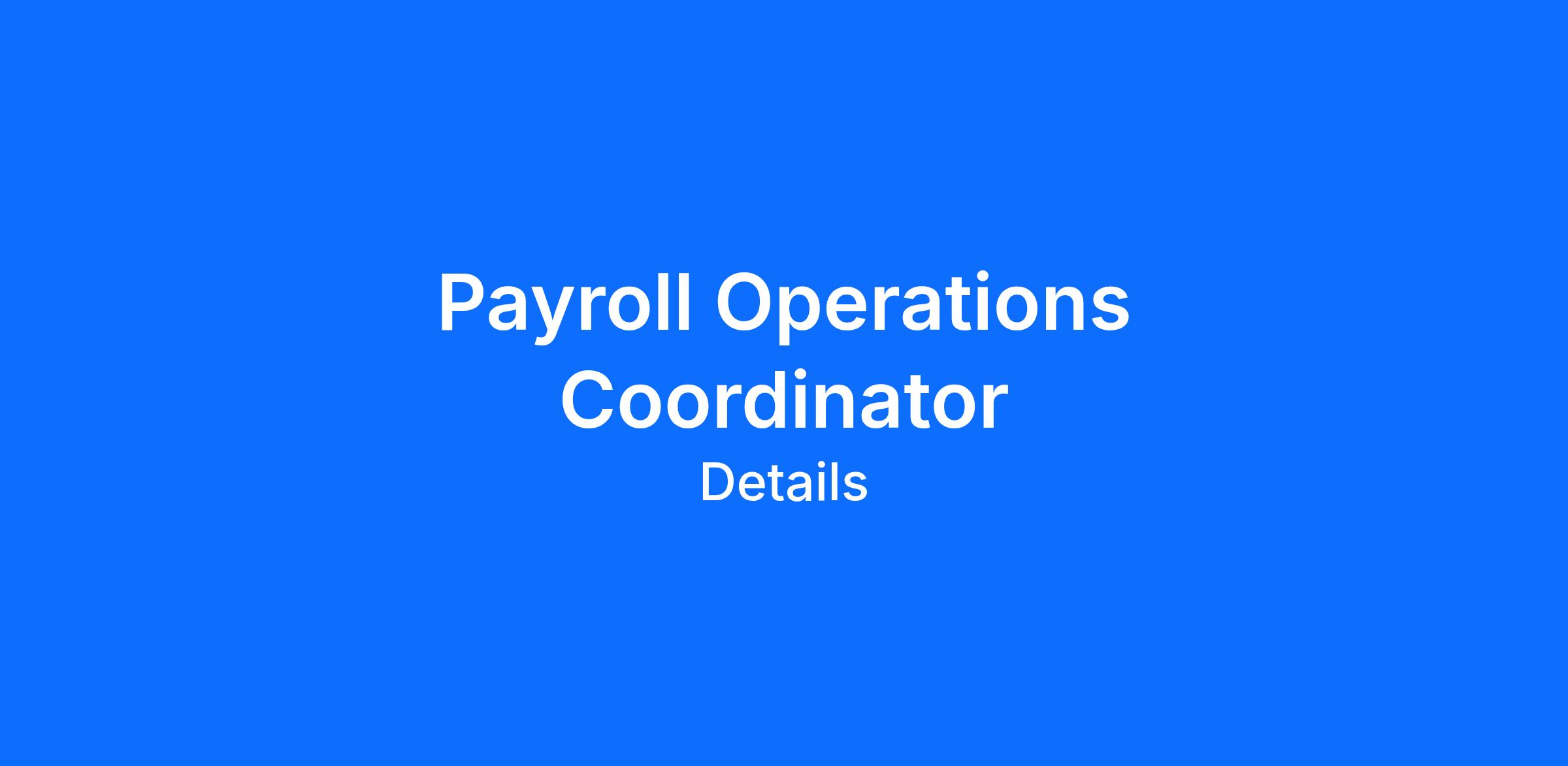 | Position Title: | Payroll Operations Coordinator | |