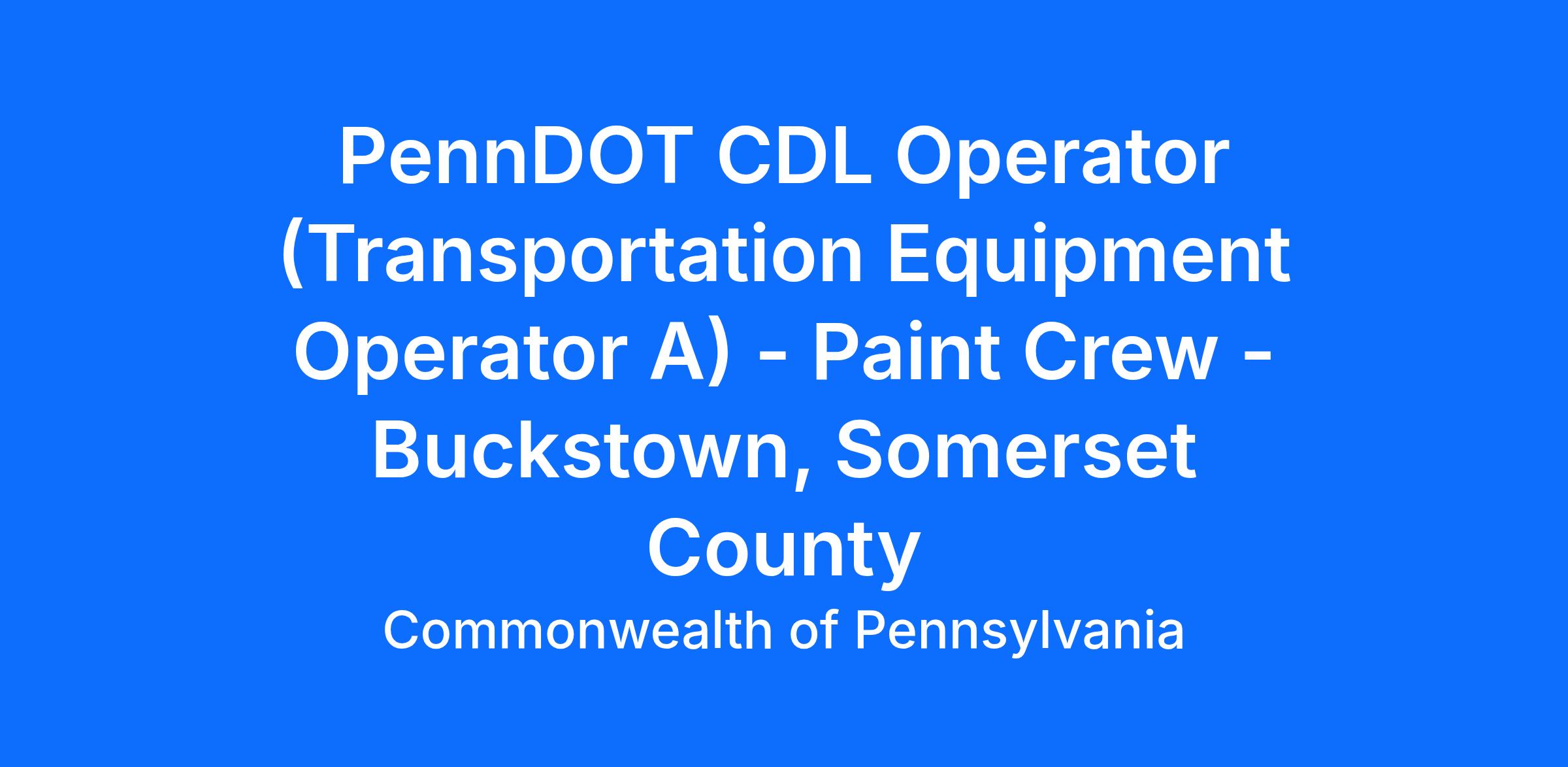 The Department of Transportation is seeking a skilled PennDOT CDL Operator to join the Paint Crew based at the Buckstown Shed in Somerset County. This district role plays an important part in line painting, thermoplastic application, and other durable pavement marking operations, requiring the safe and effective use of specialized equipment. The position also includes operating maintenance equipment assigned to this operator level and performing a variety of manual labor duties to support winter maintenance operations. Step into a role where your work keeps Pennsylvania’s roads safe and clearly marked—apply today.