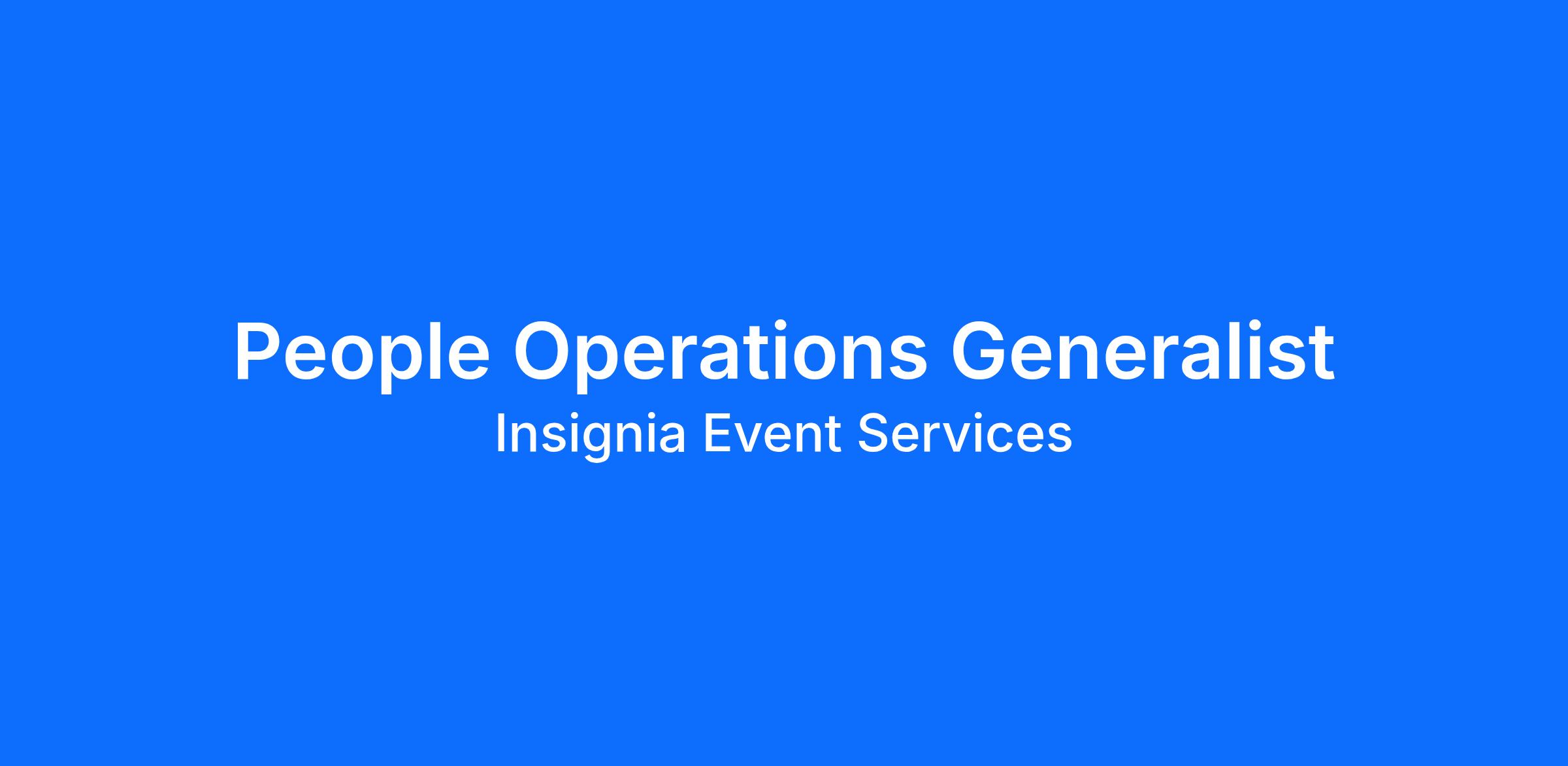 Under the supervision of the People Operations Manager, the People Operations Generalist is responsible for supporting the people strategy for Insignia Event Services. The People Operations Generalist plays a key role in implementing Insignia's people strategy and independently manages core people operations functions for their assigned areas, including hiring, onboarding, new hire orientation, employee experience initiatives, payroll processing, and terminations.