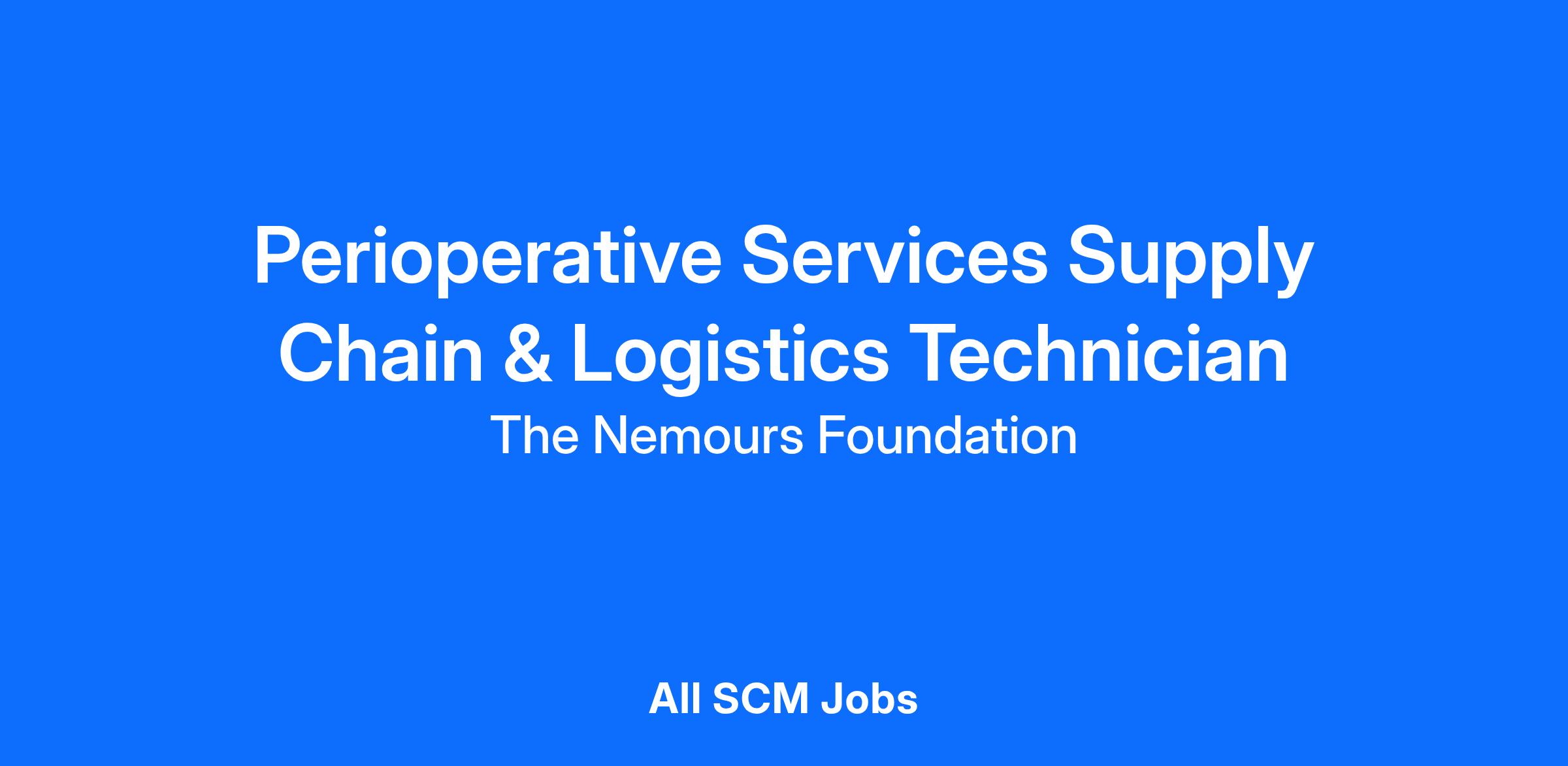 DescriptionNemours is seeking a Perioperative Services Supply Chain & Logistics Technician to join our Nemours Children's Hospital team in Wilmington, DE. Full-time benefits (health, dental, vision, PTO, tuition reimbursement, etc…) are included. The hours are 10a-630p.