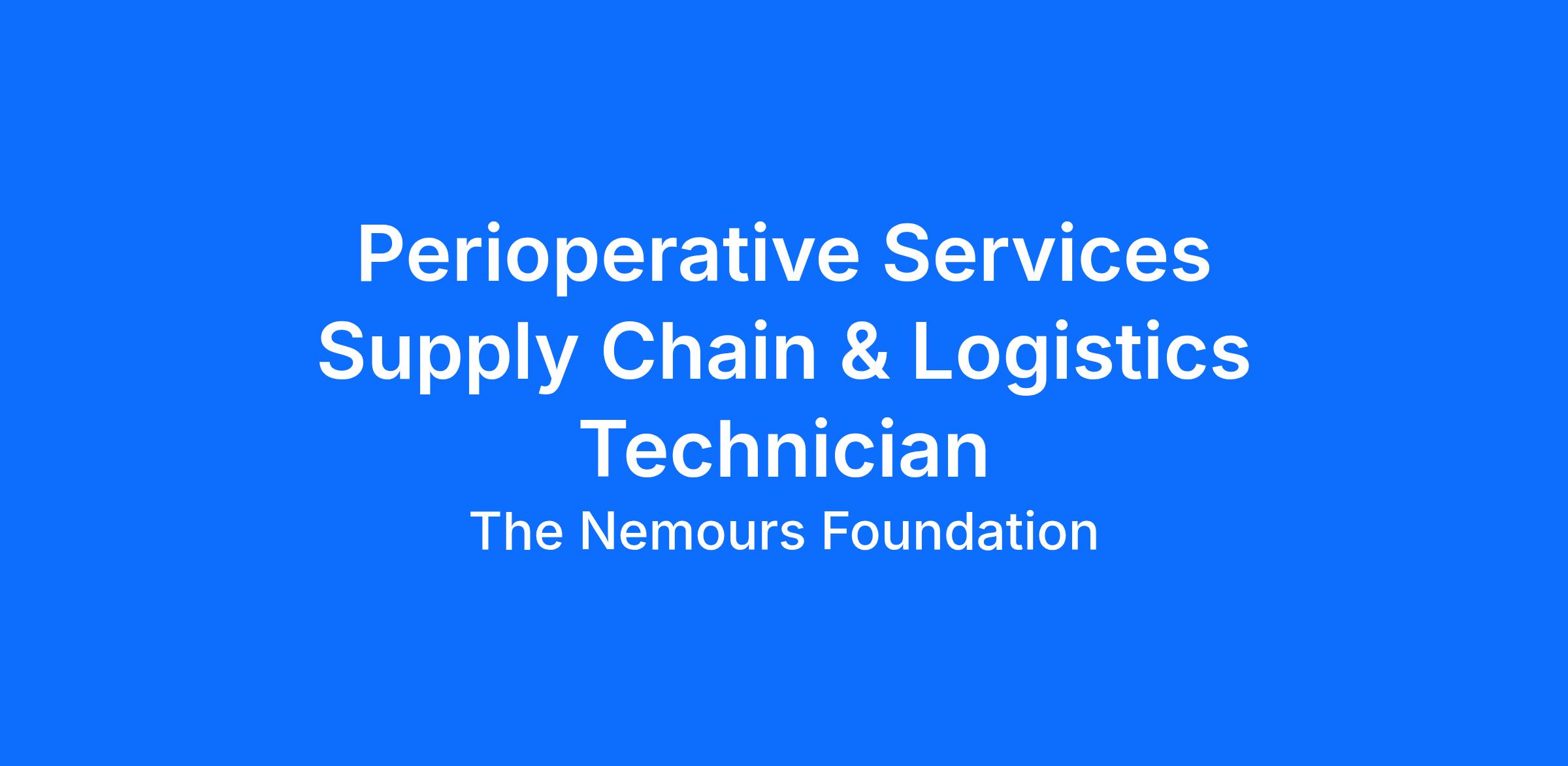 DescriptionNemours is seeking a Perioperative Services Supply Chain & Logistics Technician to join our Nemours Children's Hospital team in Wilmington, DE. Full-time benefits (health, dental, vision, PTO, tuition reimbursement, etc…) are included. The hours are 10a-630p.