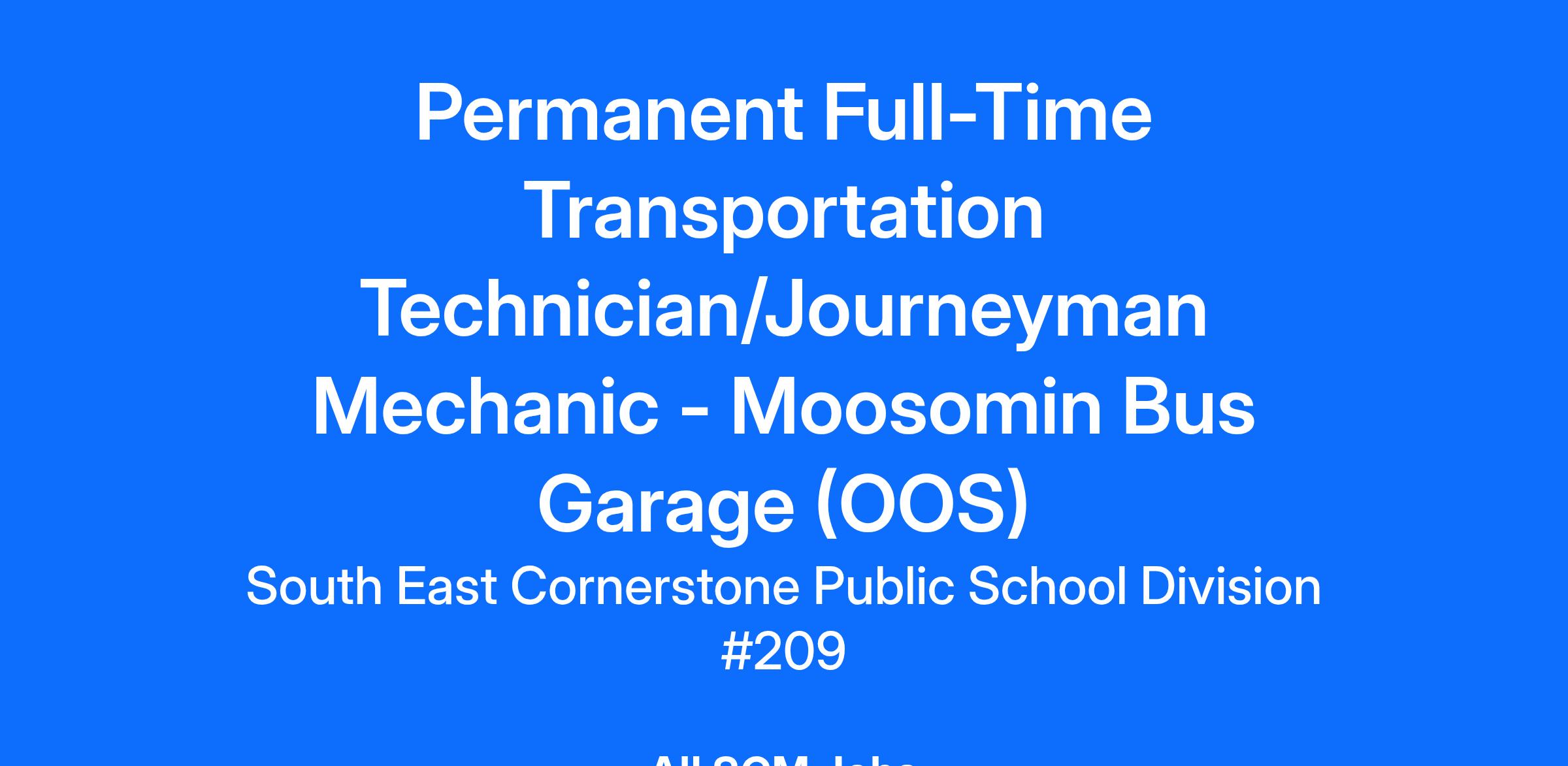 South East Cornerstone Public School division is seeking a full-time permanent Transportation Technician for our Moosomin Bus Garage location. Reporting directly to the Transportation Foreman, the successful incumbent of this position will carry out the day to day maintenance of bus and fleet vehicles and shall ensure that all are safe and reliable.