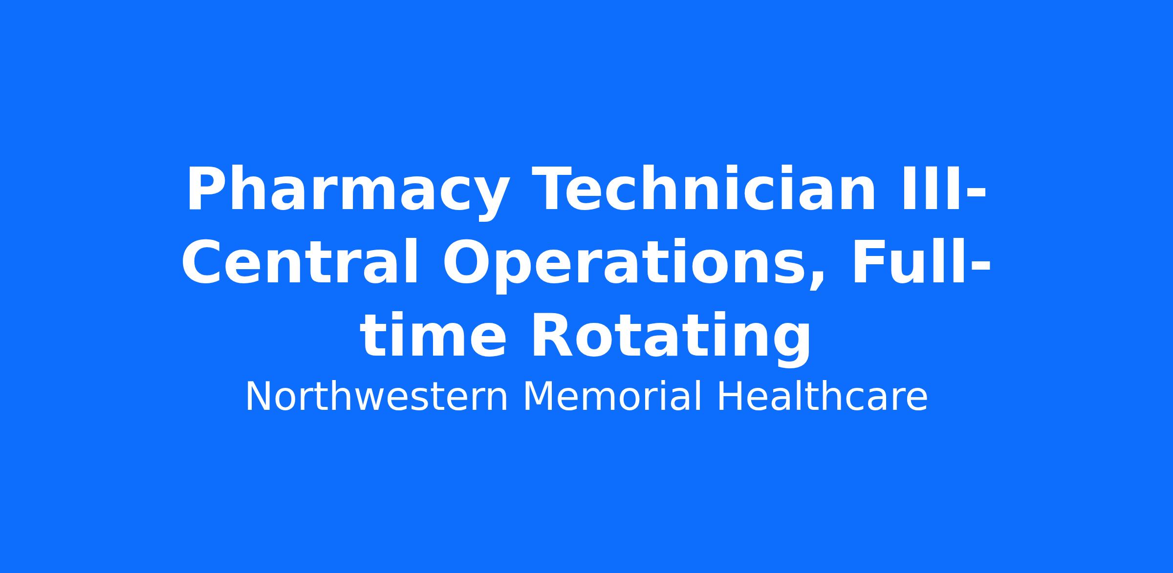 The primary work location for this position is the Feinberg 9th floor pharmacy. However, this position rotates to other pharmacies within Northwestern Memorial Hospital subject to the needs of the work group.