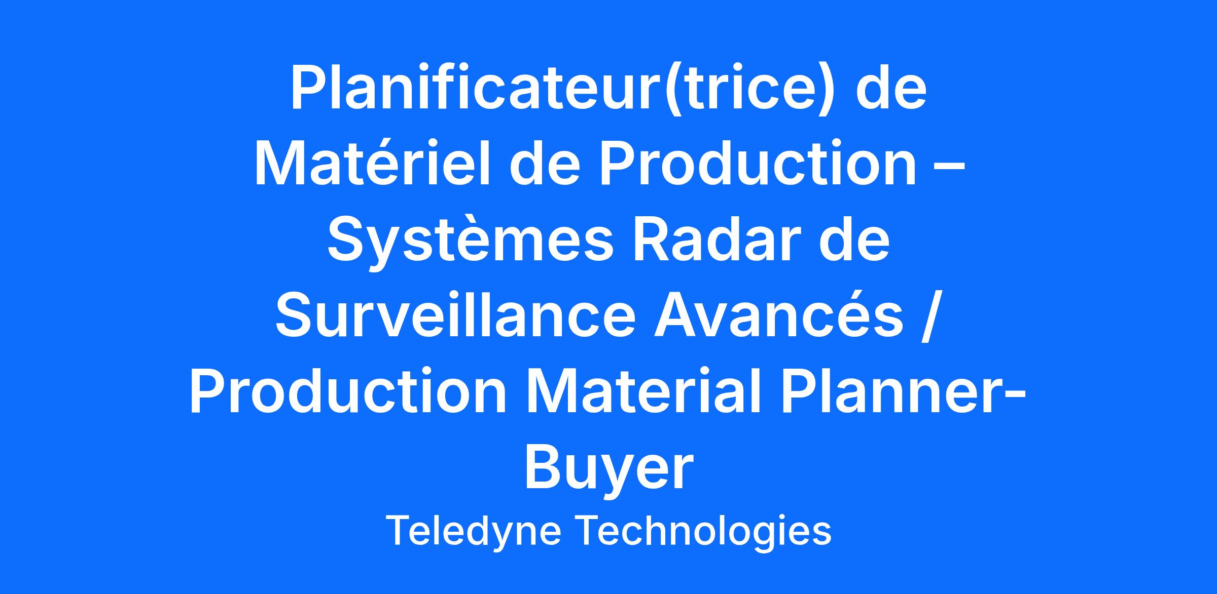 Planificateur(trice) de Matériel de Production – Systèmes Radar de Surveillance Avancés