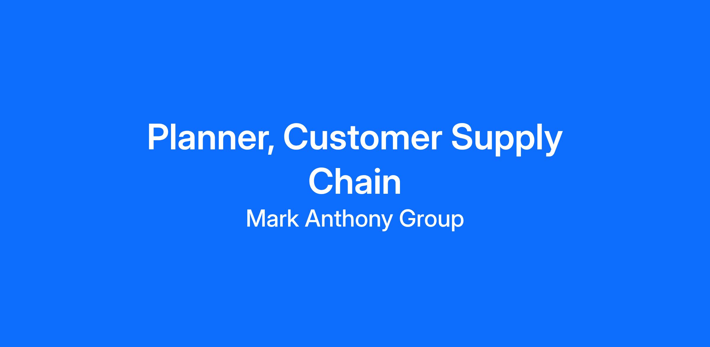 The Customer Supply Chain Planner is responsible for focusing on the customer and understand their expectations, while working internally to deliver an optimized supply chain. They serve as the voice of the customer within Mark Anthony and will be the linkage between Sales and Supply Chain to deliver the right product at the right time.