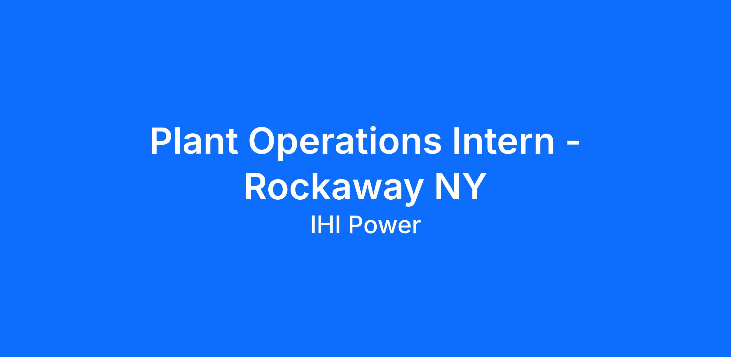 IHI Power Plant - Rockaway Peakers location in Rockaway, NY is looking for an inquisitive and highly motivated person who can effectively communicate to join our team as a Summer Intern in 2026. Our dynamic team is highly skilled in our field and enjoys teaching others what we are passionate about. If you are selected for the internship you will learn about an industry that is essential to everyday life. Focal areas will include industrial processes, control systems, thermodynamics, process improvement, business acumen, and much more.