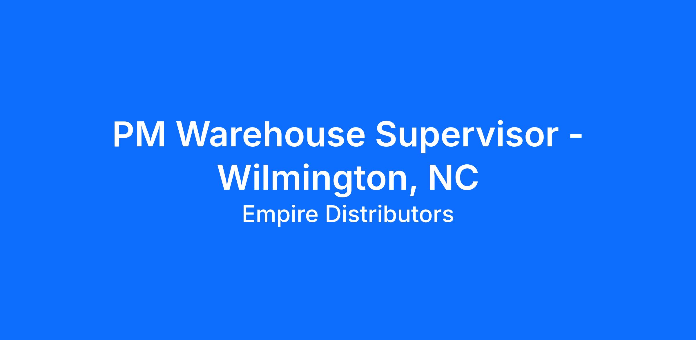 Empire Distributors Inc, A Leading Beverage Distributor is now hiring a PM Warehouse Supervisor. Our company offers competitive wages, potential growth opportunities, and excellent benefits that include, but aren't limited to healthcare, retirement benefits, paid time off, company paid life insurances, and supplemental Aflac and legal plans.