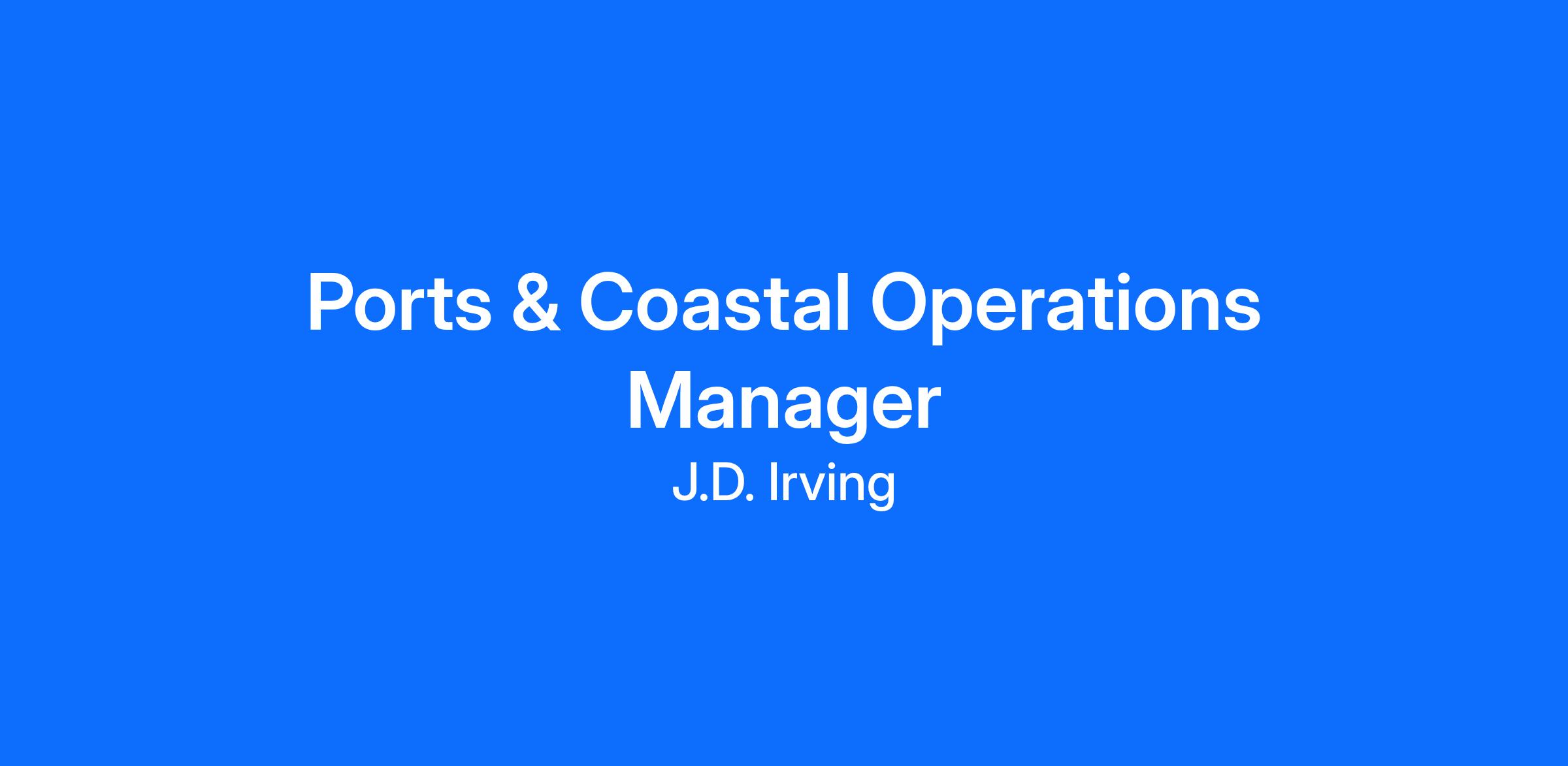We are currently seeking applications for the position of Ports & Coastal Operations Manager to join our Saint John operation.