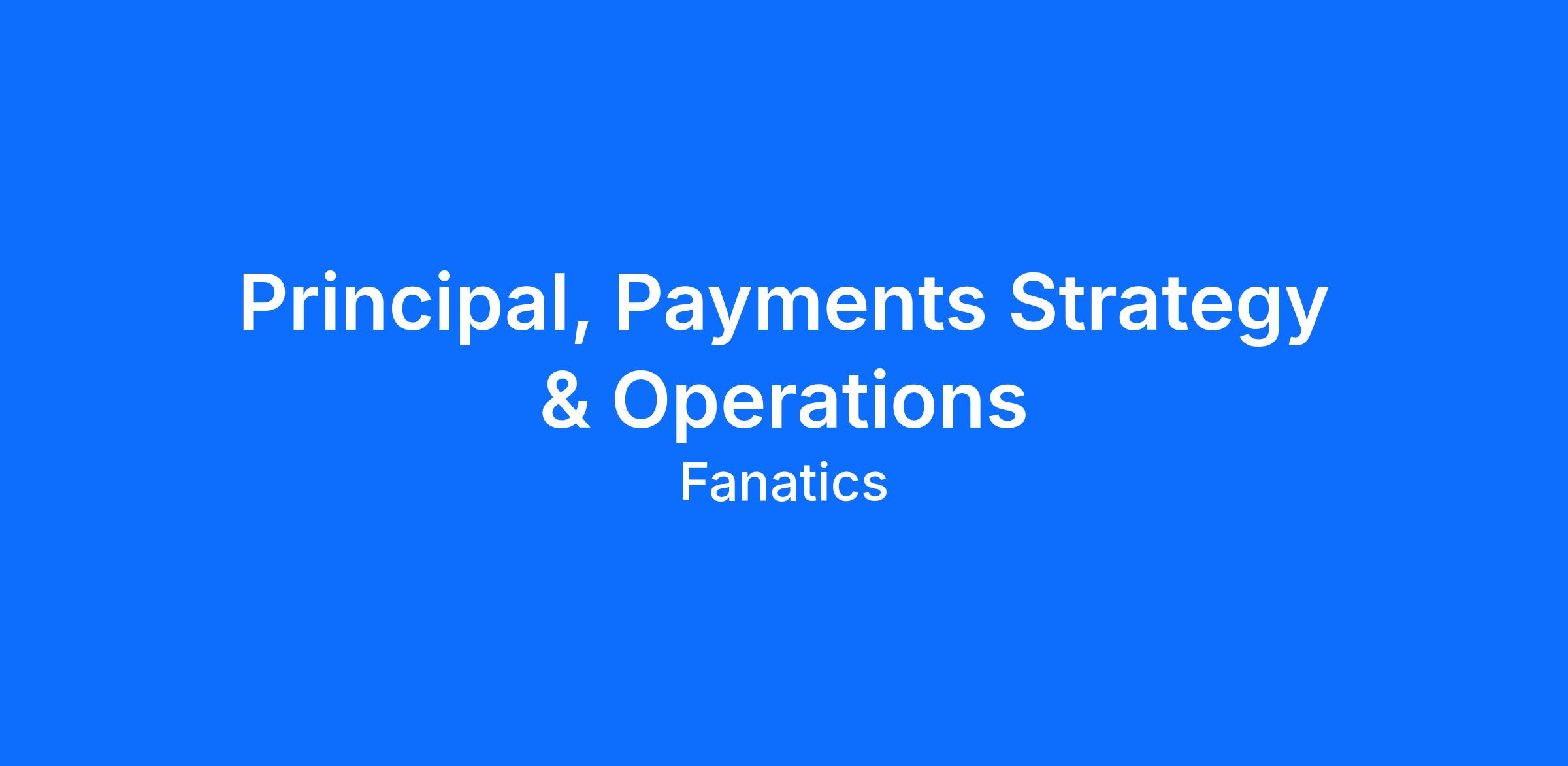 Role: Principal, Payments Strategy & Operations