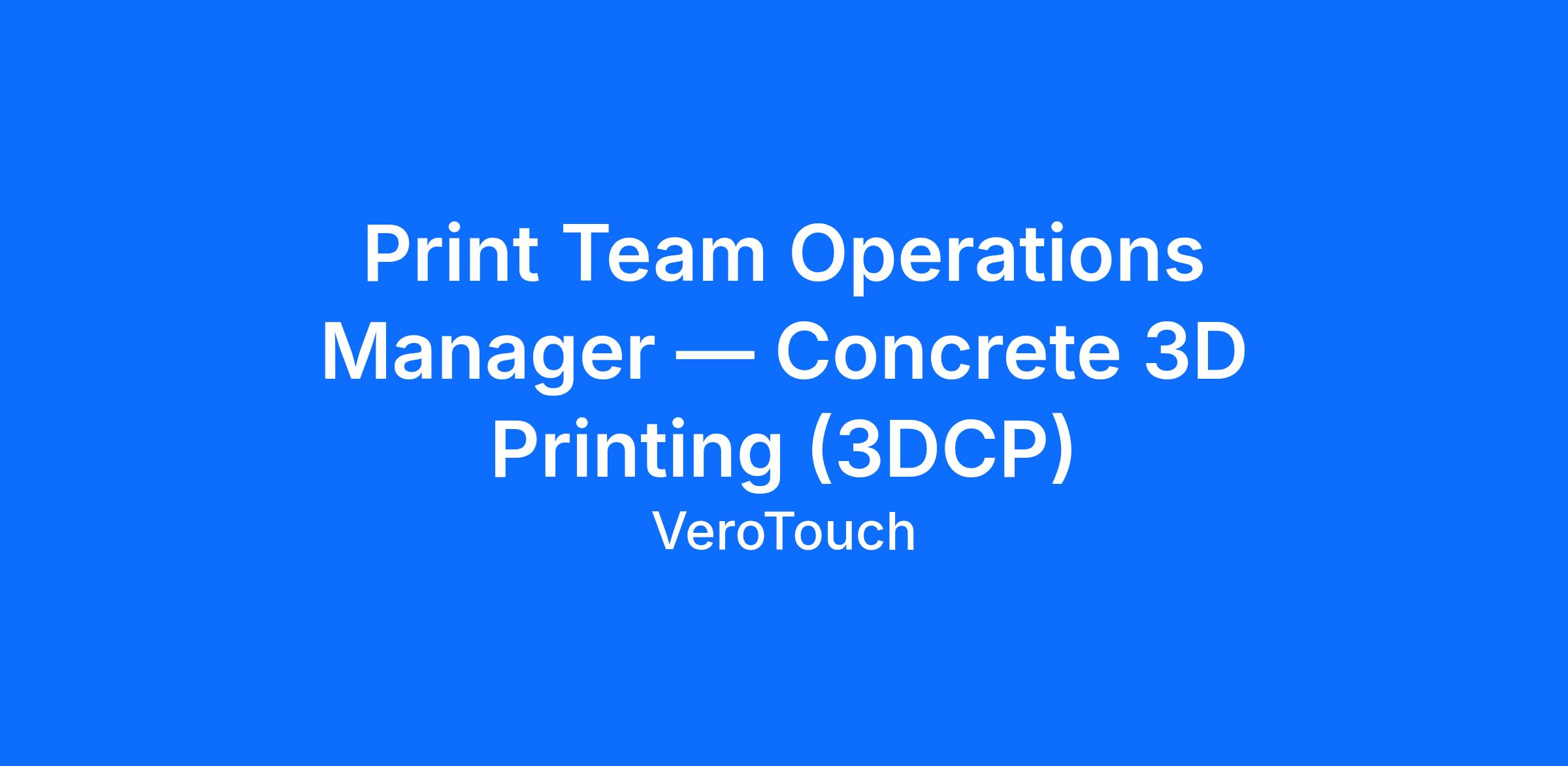 VeroTouch is hiring a Print Team Operations Manager to run the management engine of our concrete 3D printing production team. This is an execution-first leadership role responsible for ensuring the print crew can reliably meet daily and weekly production demands through disciplined planning, scheduling, resource coordination, safety, QA/QC, and performance management.