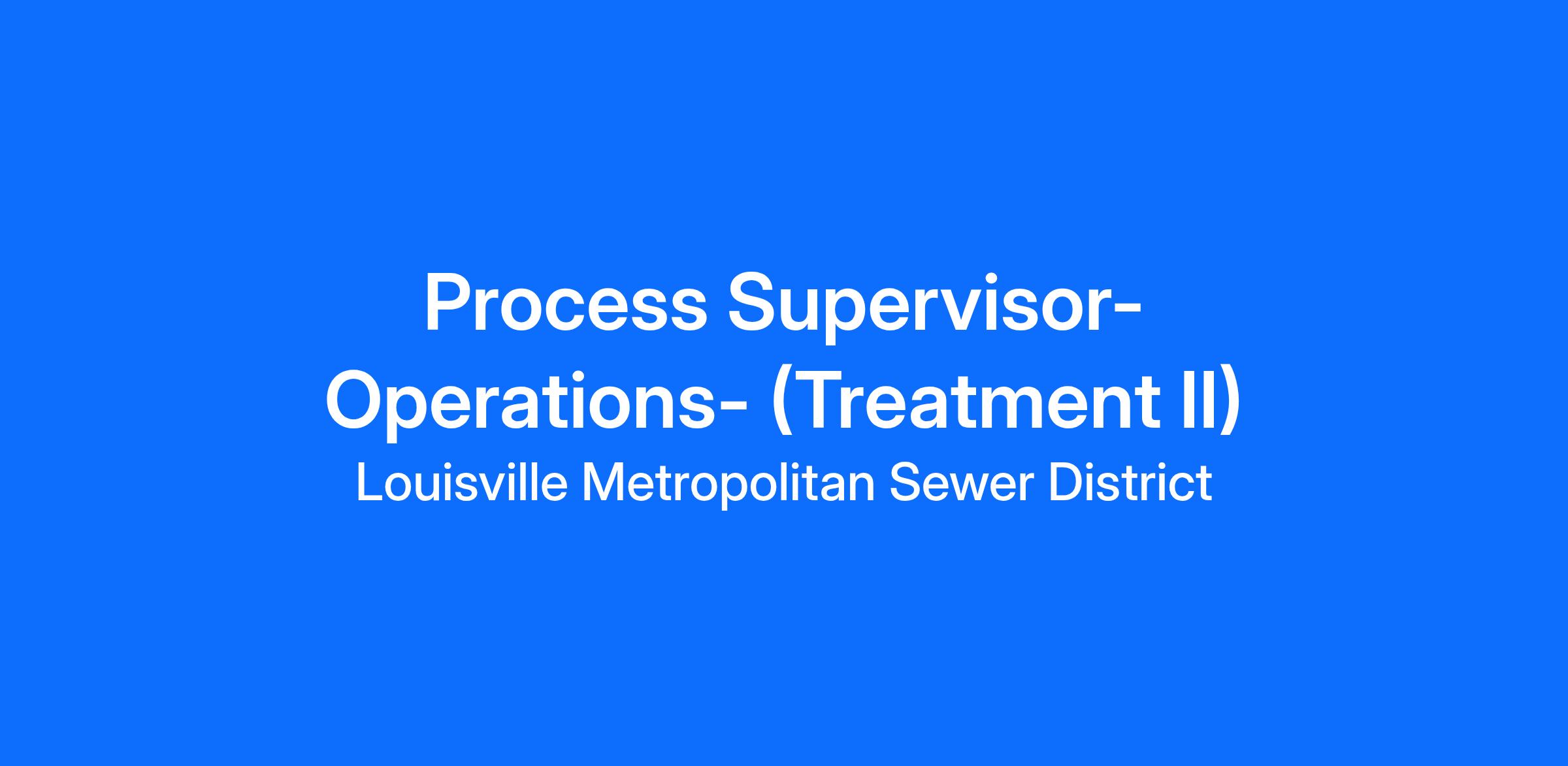 Schedules and provides direct overview of Operations & Maintenance staff. Plans, organizes and directs all activities affecting the operation of the assigned region and on a given shift. Implements procedures for the process operation of an assigned facility to assure compliance with MSD and other regulatory standards to assure a safe working environment. Ensures SAP work orders are initiated, updated with reliable information and closed in a timely manner. Develops and coordinates preventive maintenance schedules and assignments. Provides support and motivation to employees. Establishes and implements effective process control strategies for treatment centers to ensure efficient and environmentally sound operating practices. Arranges for procurement and delivery of materials and supplies. Coordinates availability of process equipment for repair in order to minimize impact on the process. Reviews treatment center laboratory sample results on a daily basis in order to determine efficient process parameters and compliance with permit requirements. Provides feedback to operators for adjustments to the wastewater treatment process. Performs projects in the design, review, coordination and acceptance of treatment center and pump station upgrade, replacement and/or construction. Provides start-up and operator training. Responds to requests for assistance by MSD administrative staff for performance of special projects. Responds to unusual situations, makes investigations and initiates corrective action.