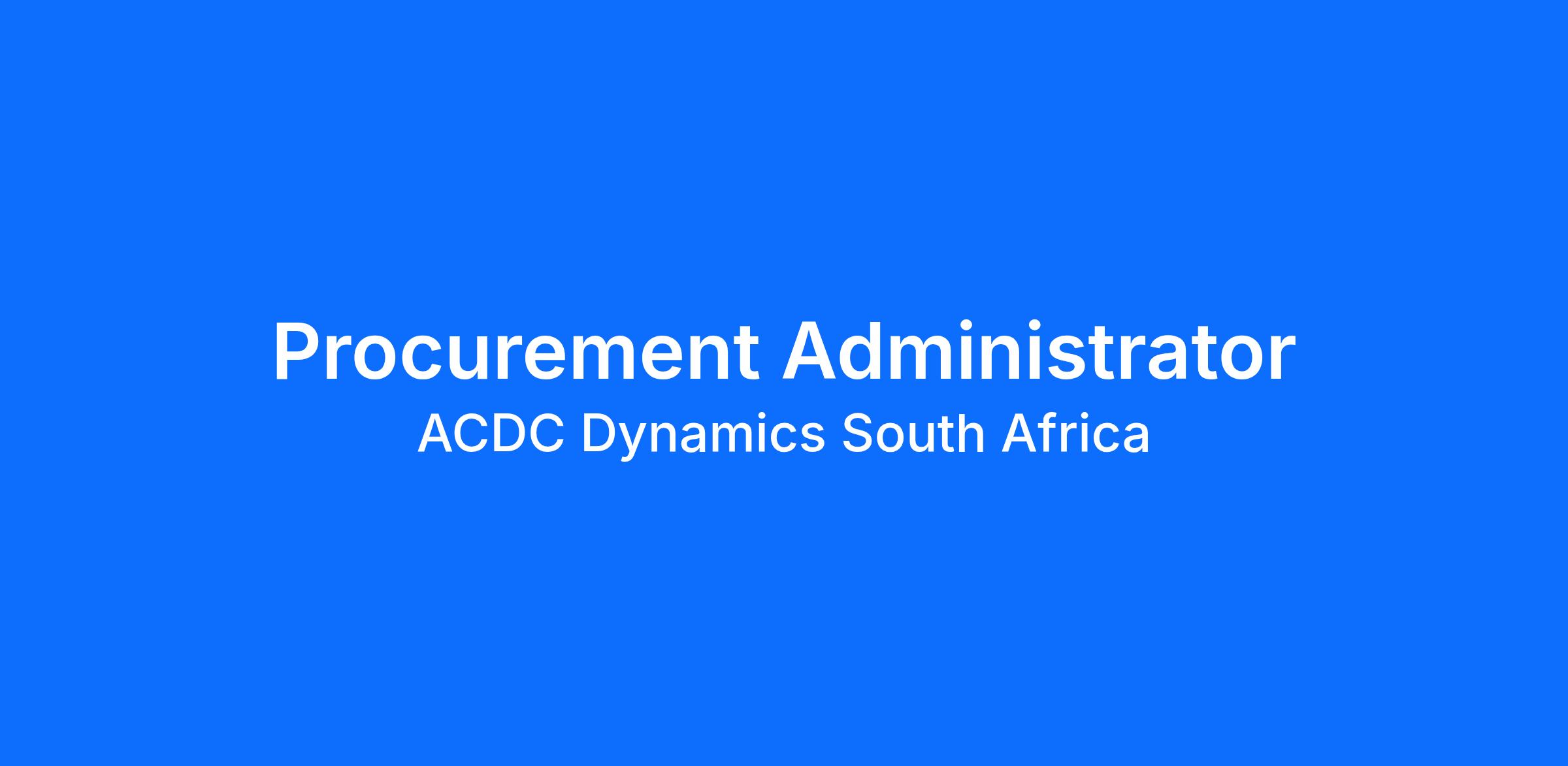 ACDC Dynamics a leading manufacturer, importer, and distributor of quality products in the electrical, electronics, pumps, and tools industry is looking for an experienced and dynamic Procurement Administrator.
