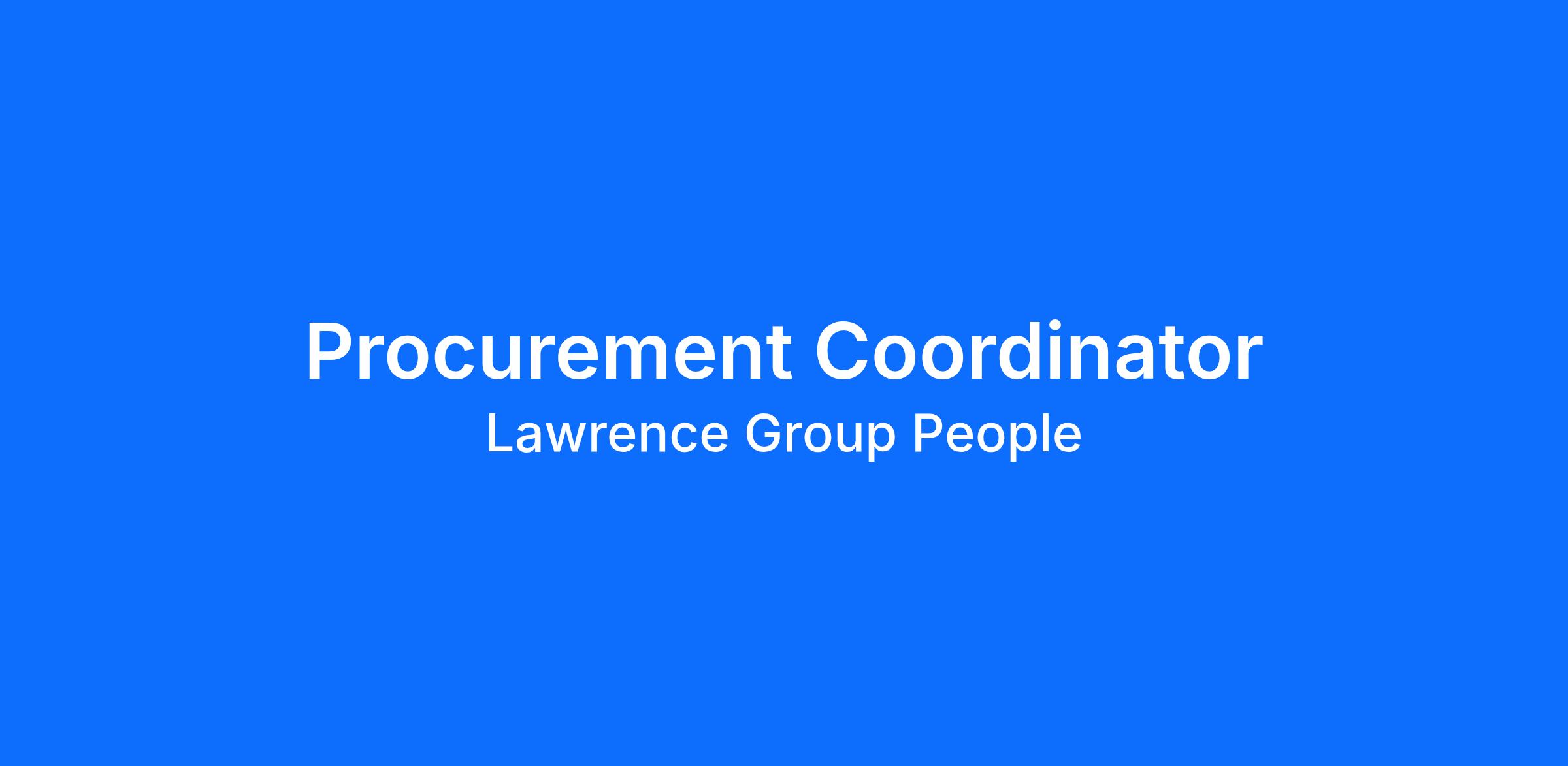Lawrence Group is seeking an experienced Procurement Coordinator to join our team immediately.