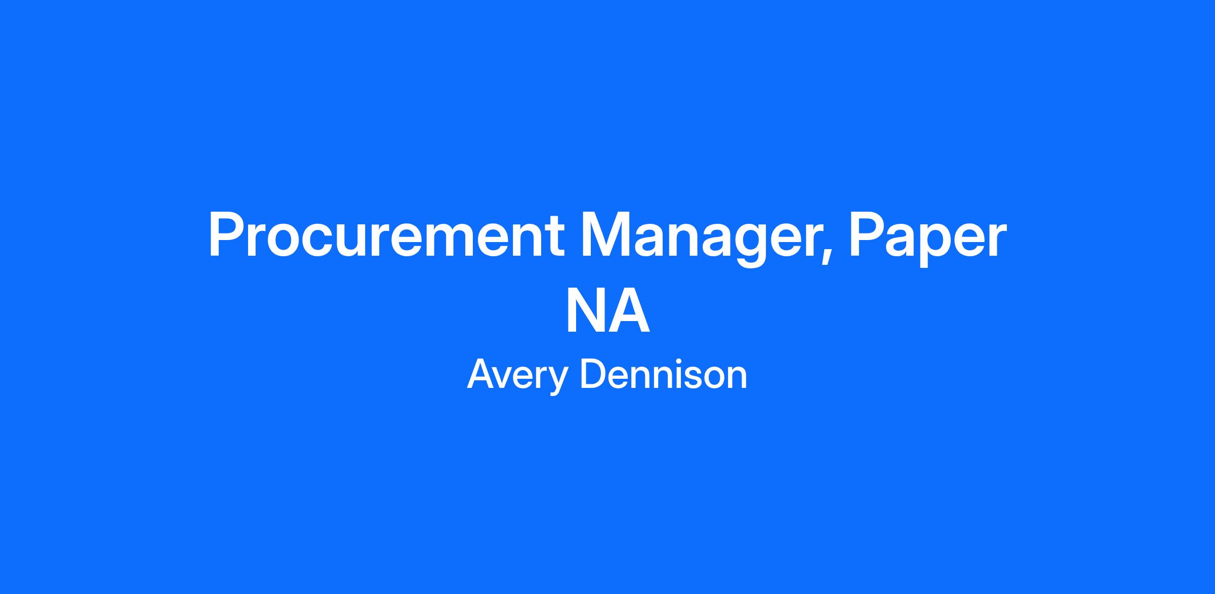 We are seeking a Procurement Manager - Paper to join our North America Team