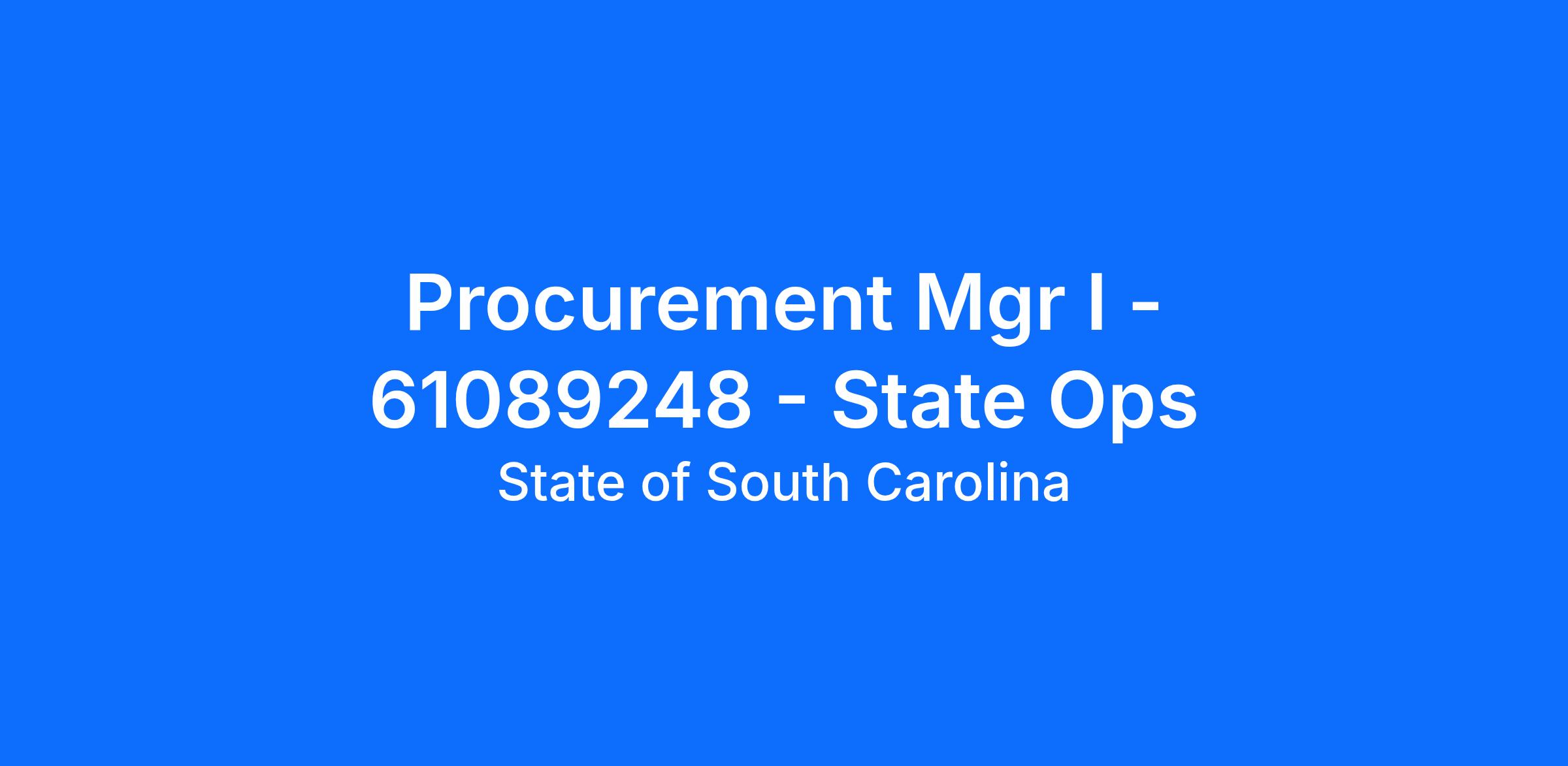 In depth knowledge and experience in state government procurement and state procurement procedures. Knowledge and experience with South Carolina Procurement Code. A working knowledge of general office procedures to include proficiency in operating computers and the Microsoft Office Suite. Ability to identify and analyze factors related to the awarding of contracts. Ability to train end users communicate effectively. May be required to work extended hours as required during emergencies, disasters, or as required. A resume will not be accepted in lieu of an online South Carolina State Employment Application. Only those applicants chosen for interview will be notified of job filled status. Note: Applicants indicating college credit, degree(s) or specialized training on the application shall provide an official copy of transcripts upon notification of selection for hire. This serves as verification of credentials listed on the application.