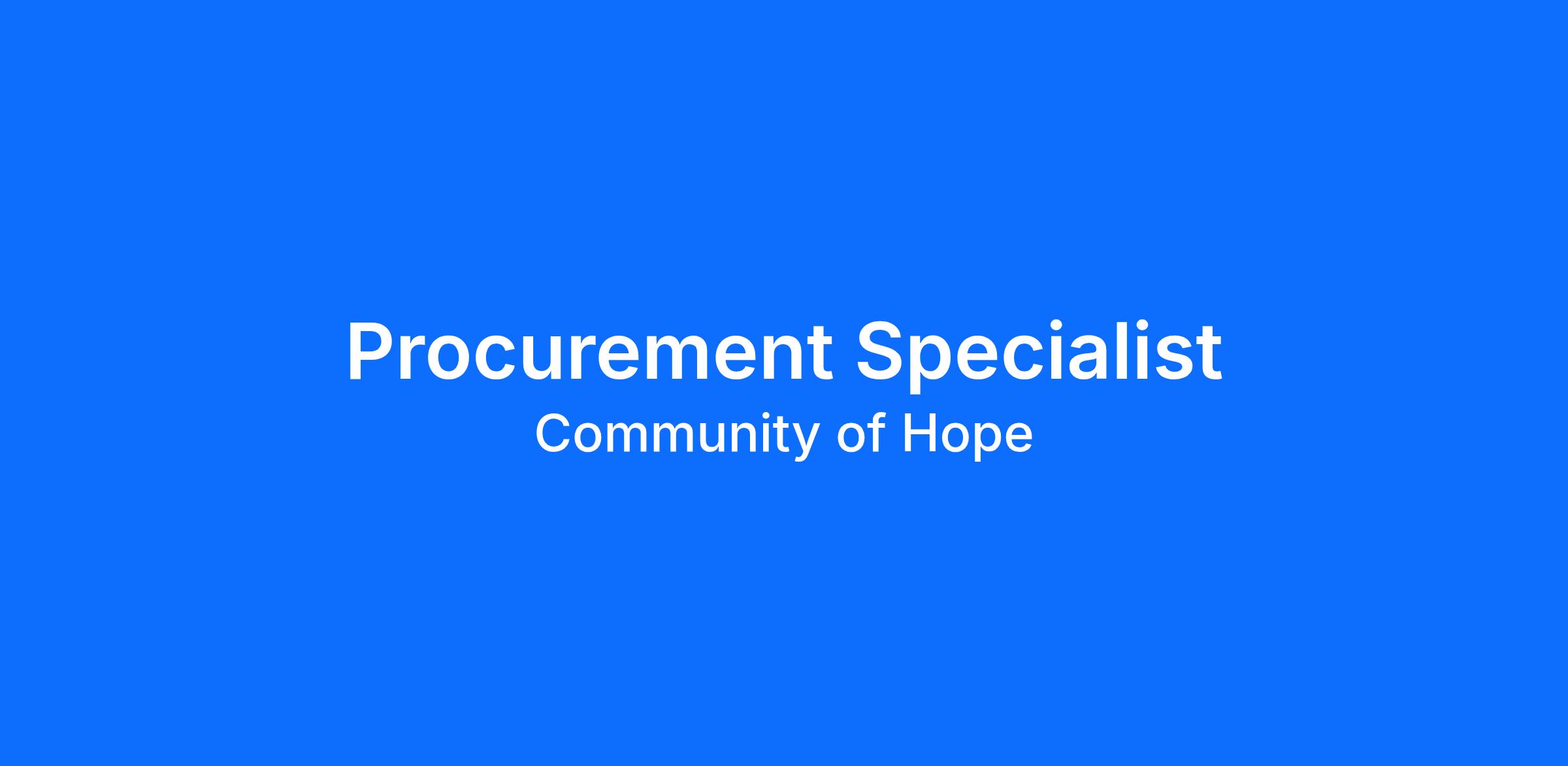 As a Procurement Specialist, you’ll play a critical role in ensuring purchases are made in alignment with donor requirements and Community of Hope’s accounting policies and procedures—helping our programs run smoothly and effectively.