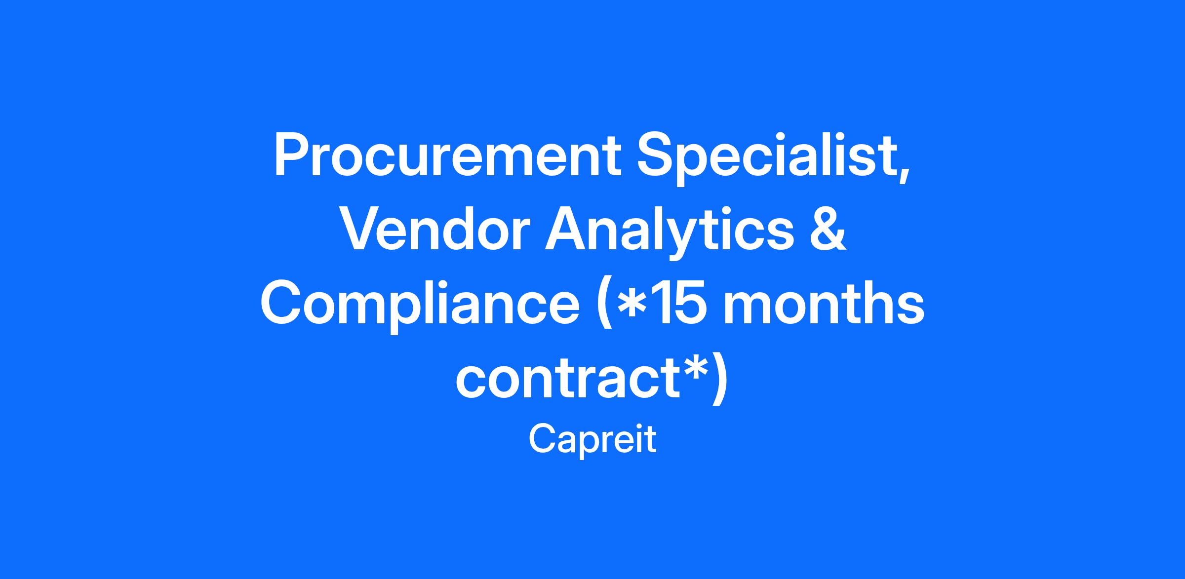 Title: Procurement Specialist, Vendor Analytics & Compliance (*15 months contract*)