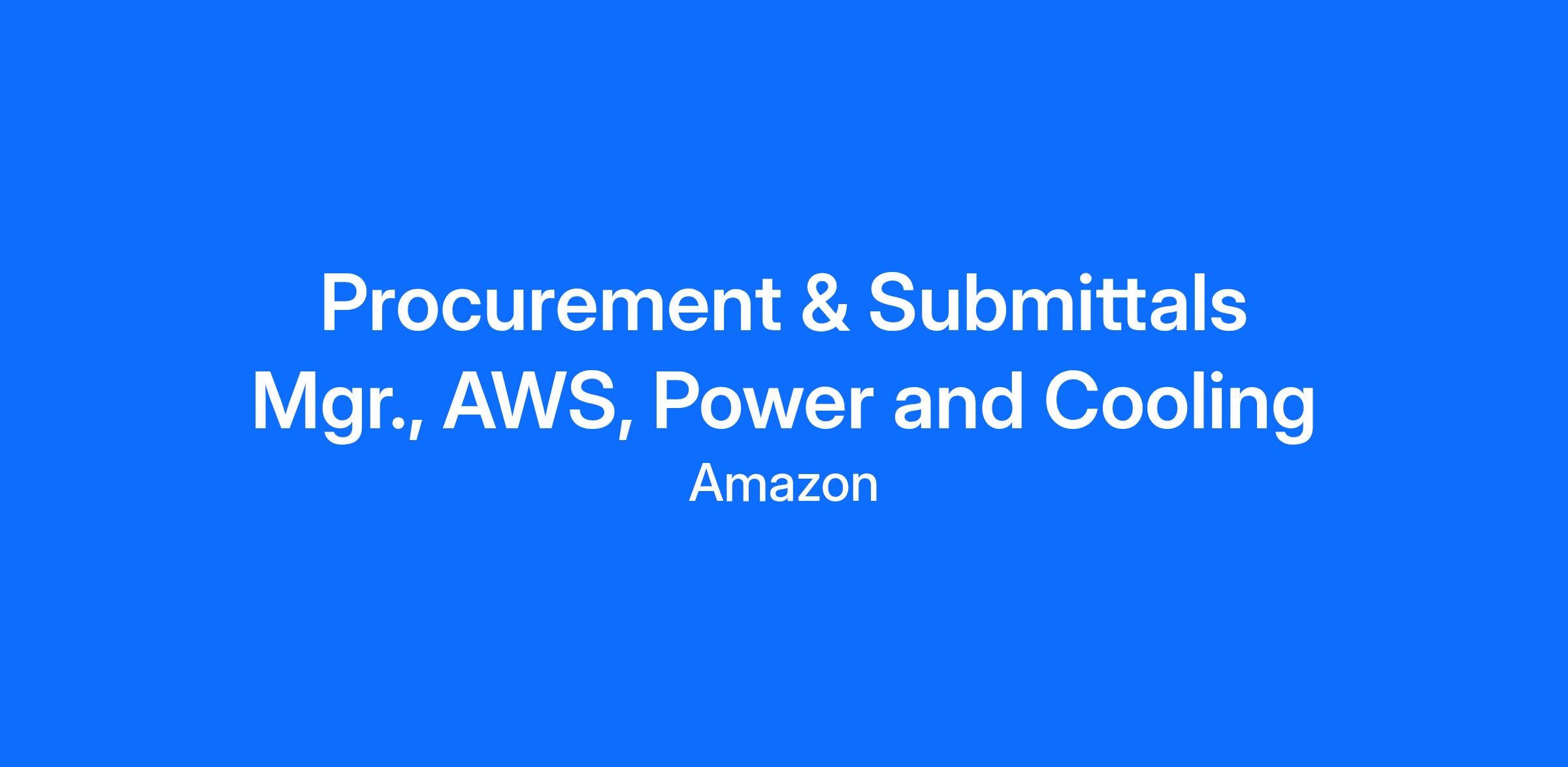 We are looking for a results-oriented individual to support AWS Infrastructure Services (AIS) sourcing requirements for mission critical equipment and manufacturing for AWS data centers.