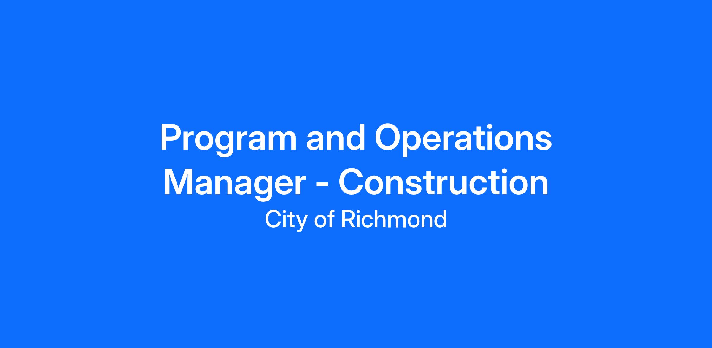 The City of Richmond, Department of Public Utilities is seeking a dynamic and experienced Program & Operations Manager – Construction to oversee the execution of natural gas distribution capital improvement projects (CIP), including renewal and new business initiatives. This position will be responsible for managing a $30,000,000+ annual CIP budget and ensuring compliance with the Richmond Gas Works Operations & Maintenance Manual and all federal, state, and local regulations.