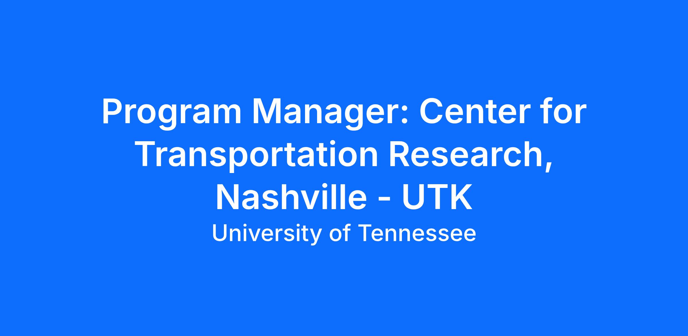 This full-time, exempt position is administered through the Center for Transportation Research (CTR) at the University of Tennessee, Knoxville, and funded by a grant from the Tennessee Department of Transportation (TDOT). The position will be located at TDOT’s headquarters in Nashville and will support the Planning Division.