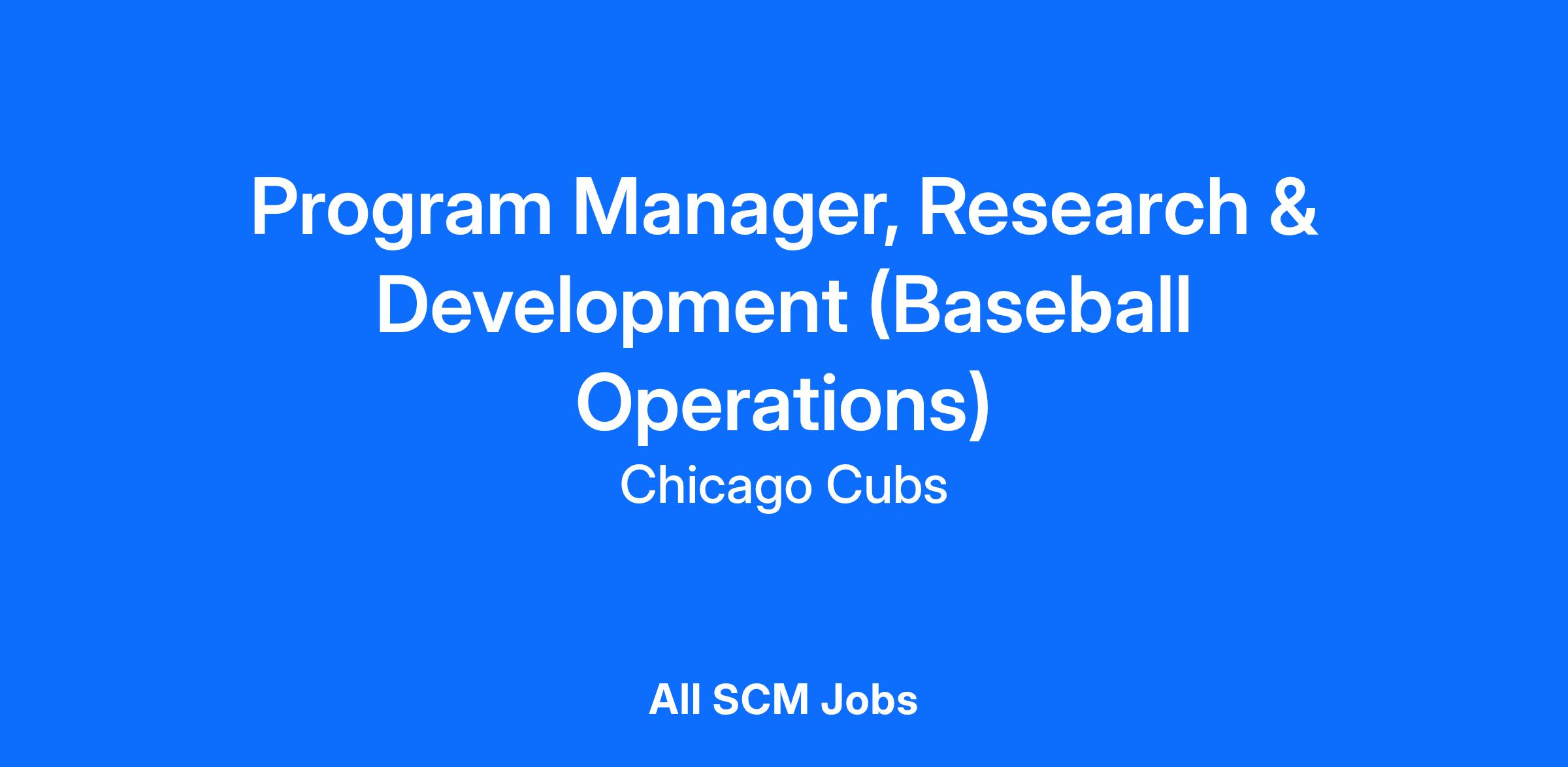 The Chicago Cubs are seeking a proactive leader who can translate strategic objectives into actionable plans, foster collaboration across all departments of Baseball Operations, and ensure successfully delivery of R&D initiatives that directly impact on-field and front office decision making. We are seeking an applicant who is an excellent communicator, has a strong work ethic, can manage multiple long-term projects concurrently, and can lead ever-changing and diverse teams over extended periods of time. The Program Manager will work with all departments of Baseball Operations as an R&D-representative and manage and facilitate implementation of new projects for all Baseball Operations.