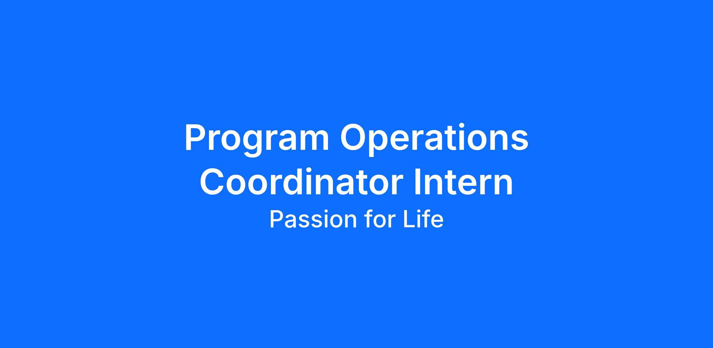 Passion for Life, Inc. is seeking applicants for the Program Operations Coordinator Intern position to support the planning, coordination, and execution of our career readiness programs. This role will assist with program logistics, data tracking, participant engagement, and process improvement. The ideal candidate is detail-oriented, proactive, and passionate about workforce development and nonprofit operations.