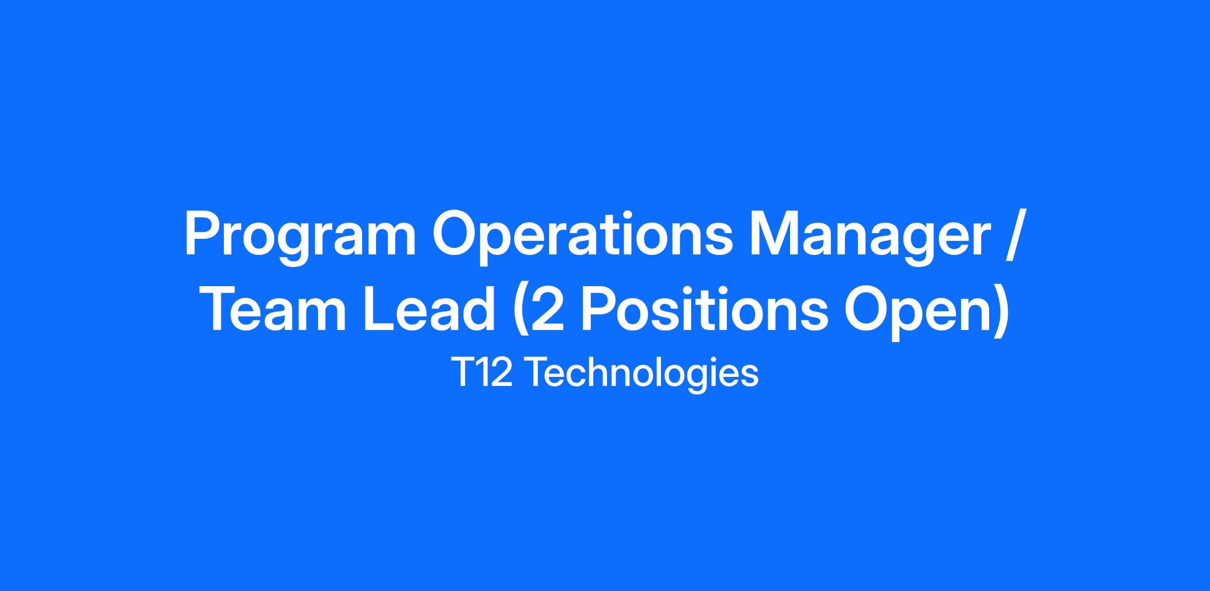 T12 Technologies is seeking to fill two Program Operations Manager/Team Lead positions to support a U.S. Government foreign assistance program in Ukraine. The Primary position will serve as the lead interface with U.S. Government stakeholders and hold delegated authority for operational decision-making, program performance, reporting, and compliance. The Alternate position will support operational continuity, in-country coordination, field activities, and mission execution to ensure seamless program operations. Together, both positions are responsible for delivery in a dynamic, high-risk environment.
