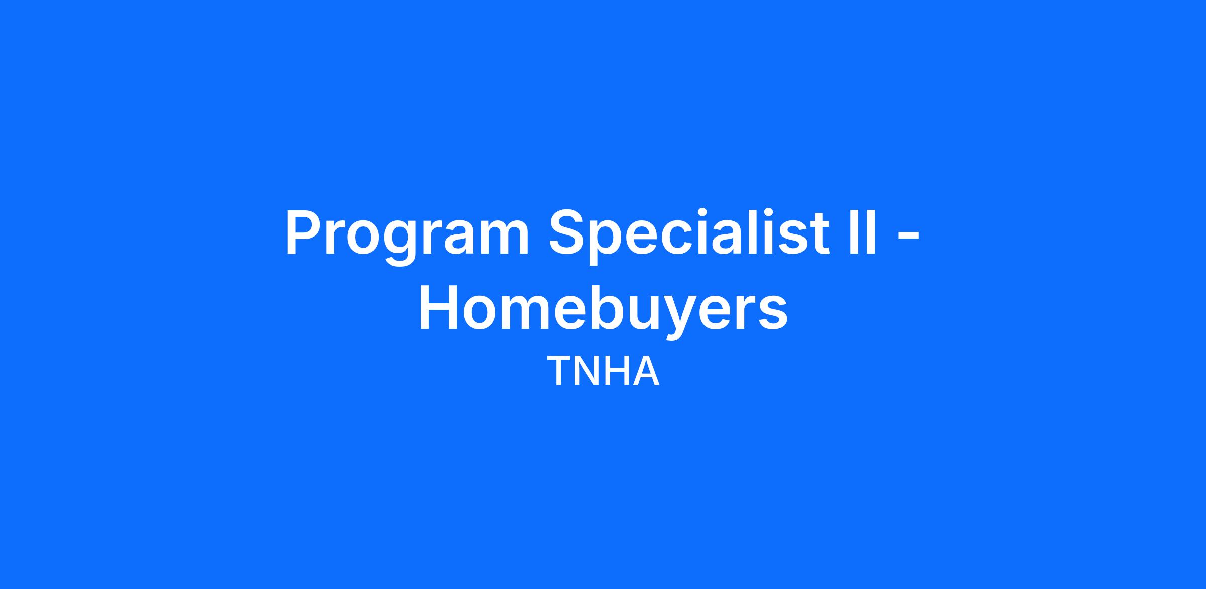 Job Title: Program Specialist II - Homebuyers