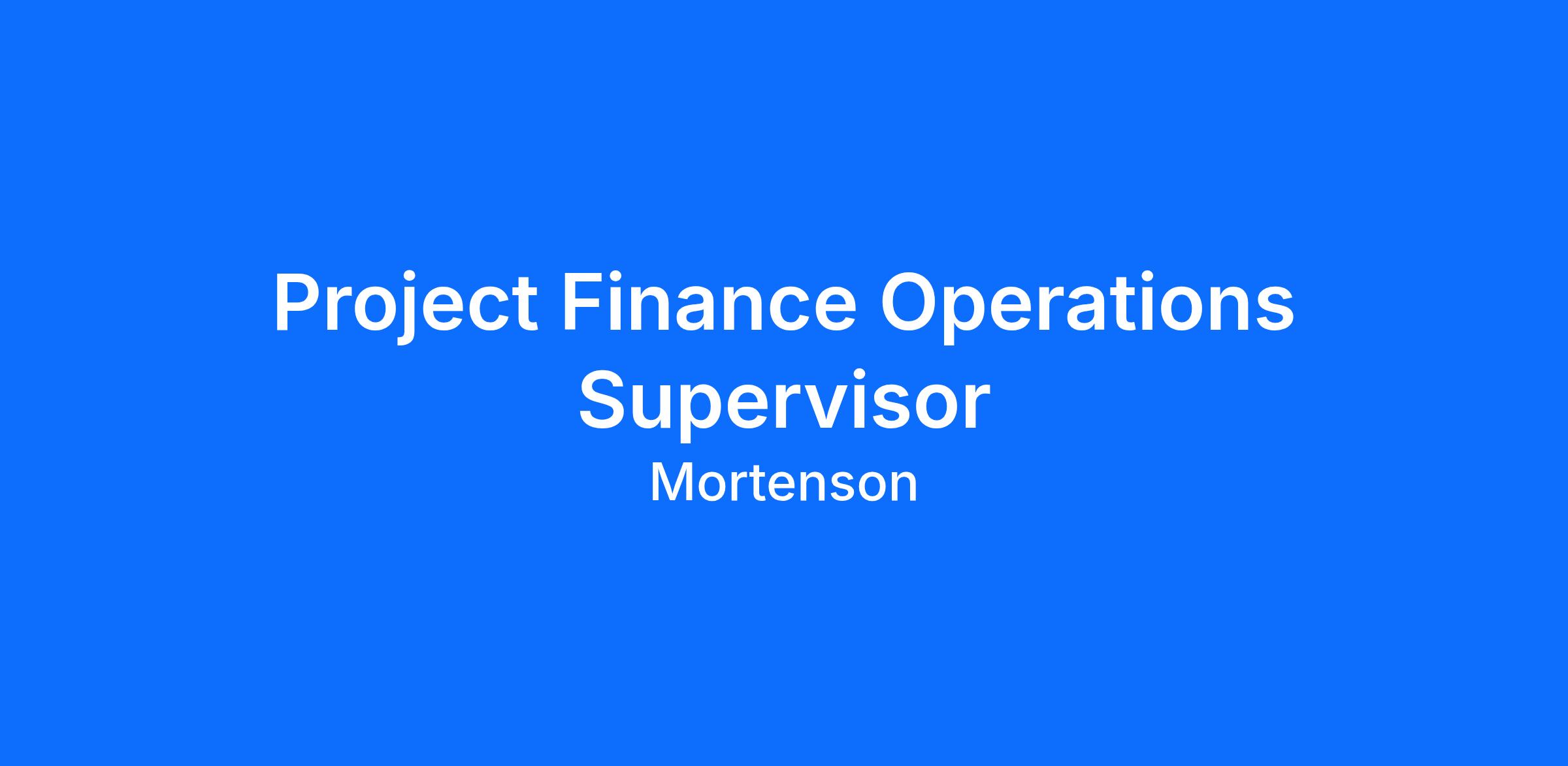 Mortenson's Data Center Solutions Team is currently seeking a Project Finance Operations Supervisor to provide accounting, analysis, and financial support to the project teams. Strong communication skills are necessary as you will interact with staff at all levels in an ever-changing environment. Your ability to remain flexible, inventive, dedicated, and efficient with a high level of integrity and confidentiality is vital to your success in this role.