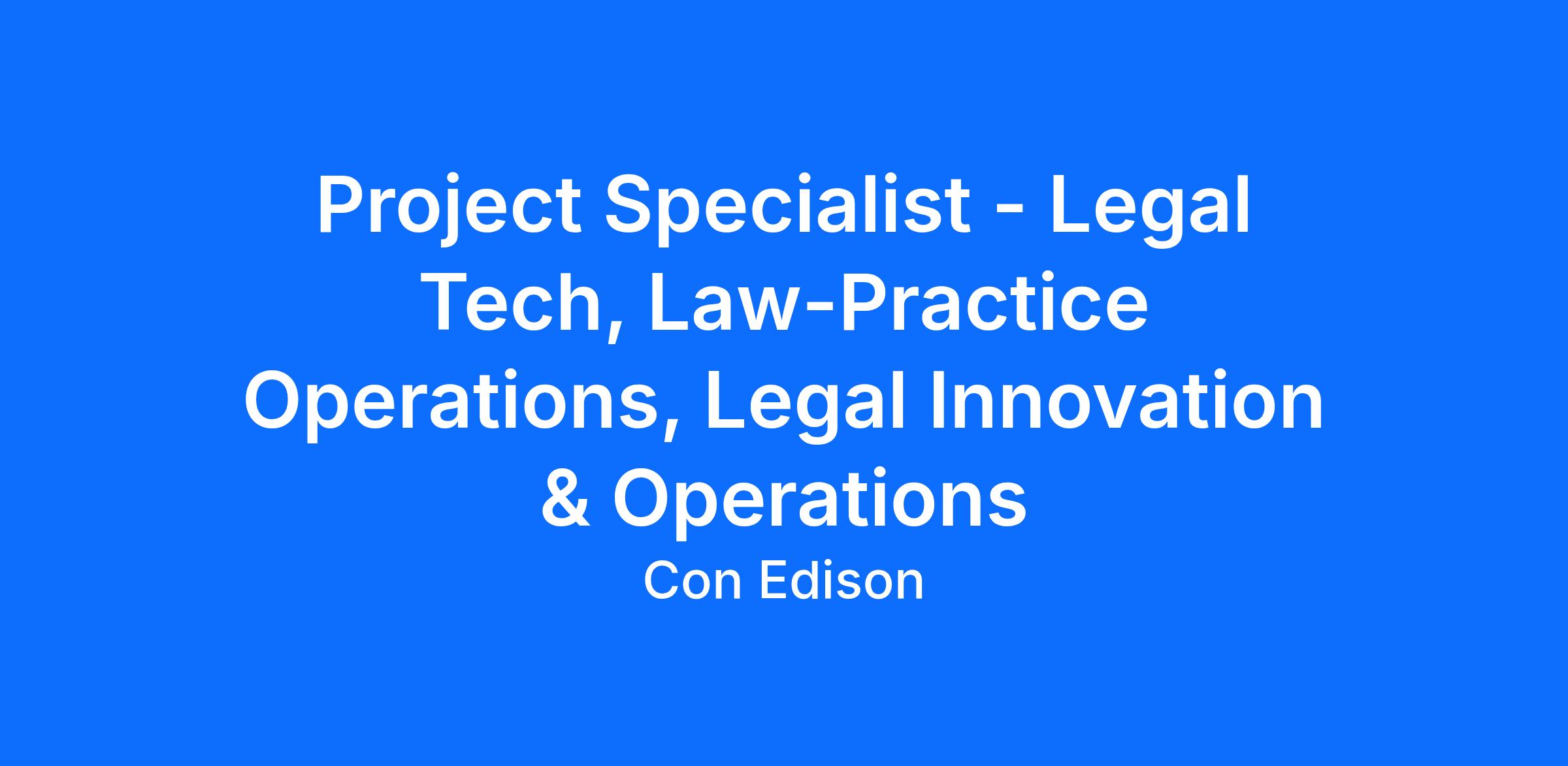 The Con Edison Law Department Legal Innovation and Operations (LIO) team is seeking a Project Specialist to manage and support projects across the Department. The role requires flexibility to adapt to changing priorities, business, and organizational needs, including learning and managing new legal technologies. This role also requires the ability to operate independently within a fast-paced environment and work proactively with stakeholders at various levels, including Law Department professionals, IT staff, and vendors. As legal technology is a rapidly changing industry, the Project Specialist is expected to be open-minded, thoughtful, strive to continuously build knowledge and skills, and manage change.Our Legal Innovation & Operations team continuously seeks innovative solutions to the meet the needs of our strategic partners. They were awarded the Most Innovative Legal Operations Team of the Year award at the 2025 Legalweek Leaders in Tech Law Awards.