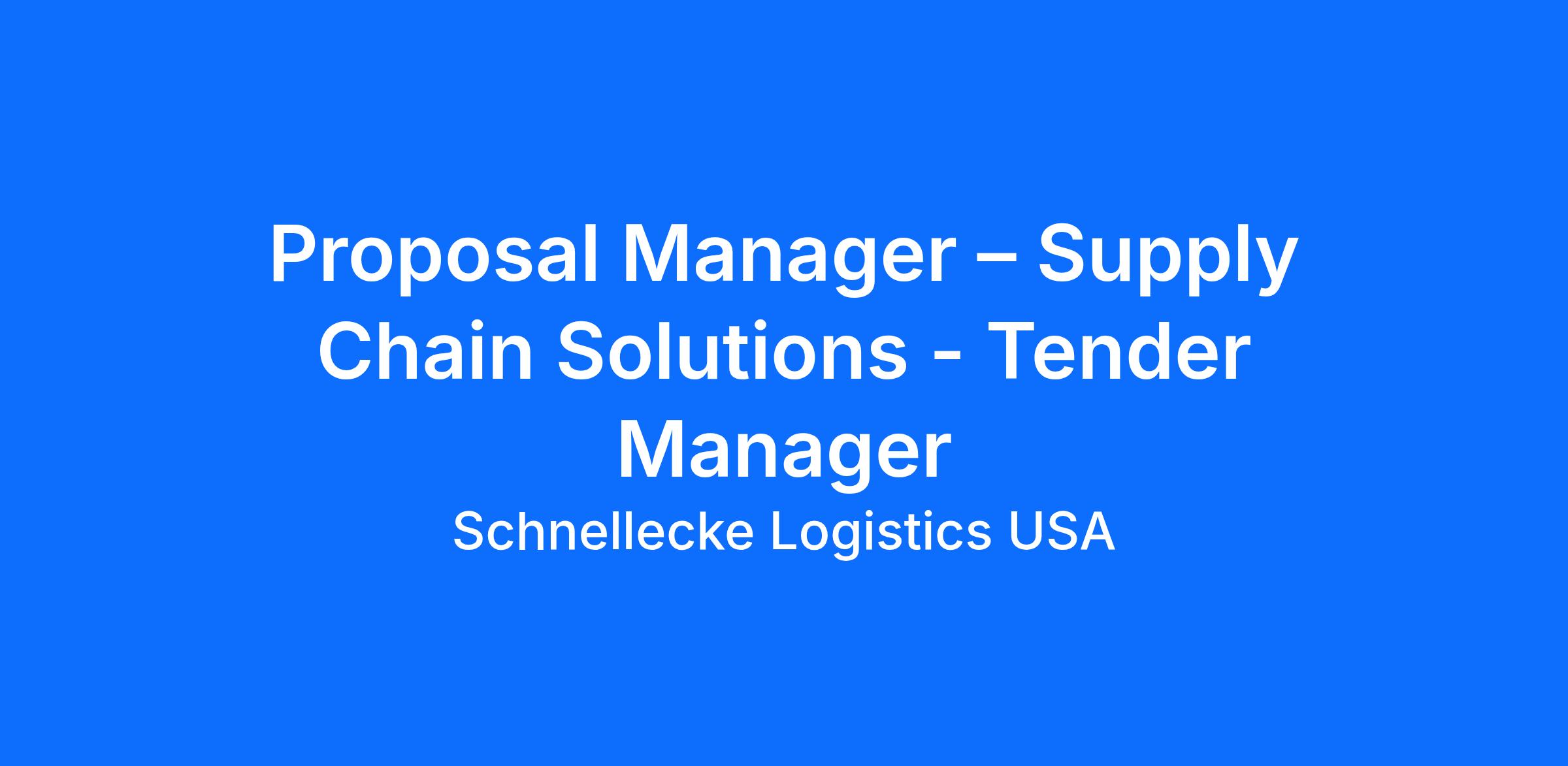 Job Title: Proposal Manager – Supply Chain Solutions - Tender Manager