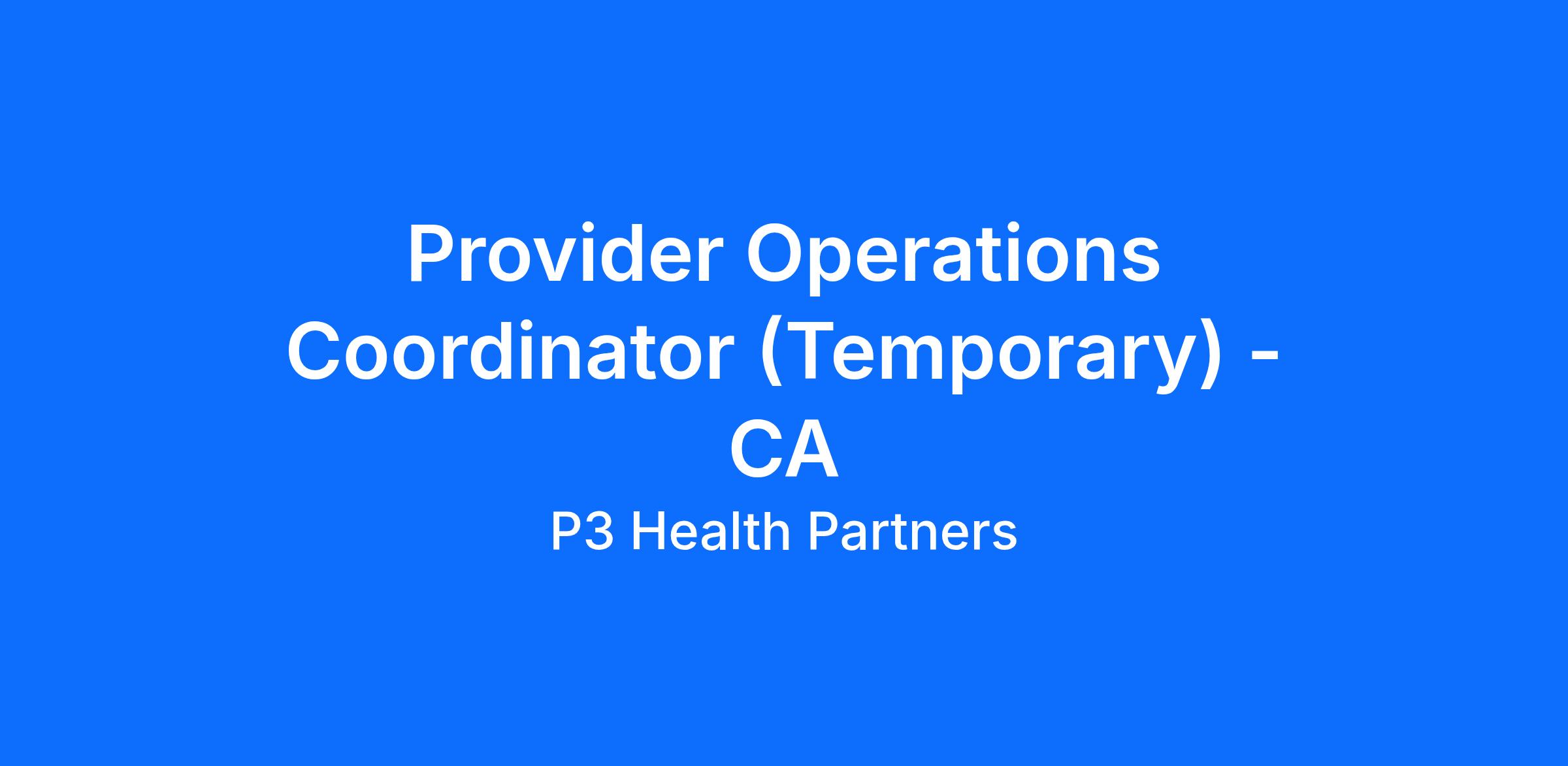 Provider Operations Coordinator (Temporary) - CA