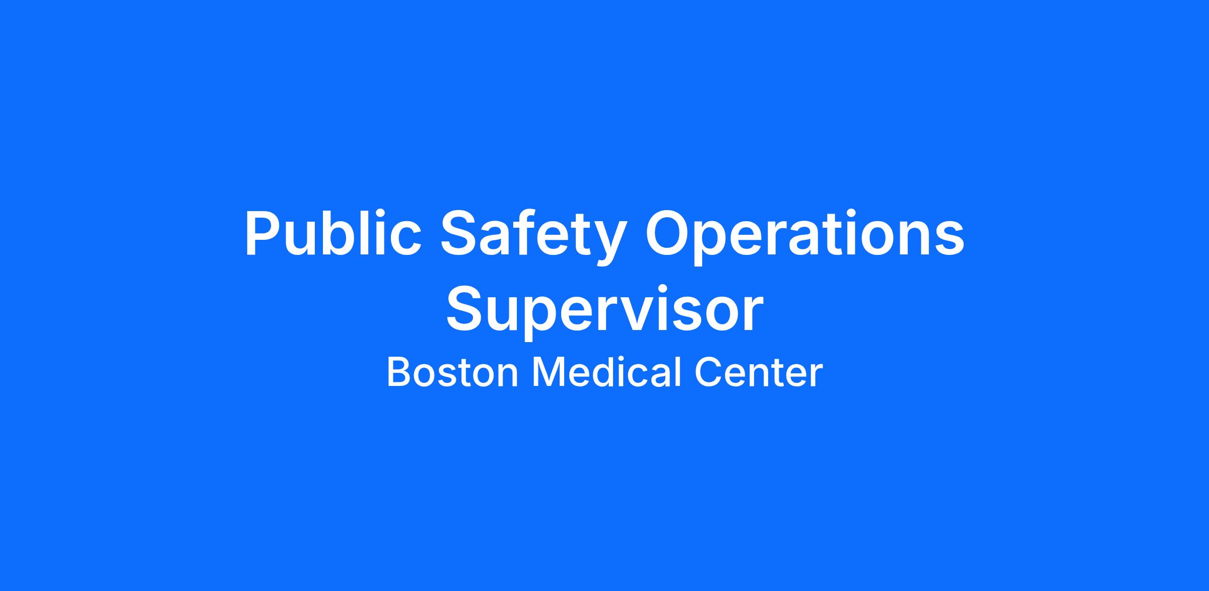 The Public Safety Operations Supervisor provides leadership and operational oversight to ensure a safe, secure, and welcoming healthcare environment for patients, visitors, staff, and the surrounding community at BMC South. Serving as the Public Safety supervisor on assigned shifts, this role is responsible for guiding, supporting, and holding Public Safety personnel accountable while ensuring effective staffing, high-quality service delivery, and compliance with healthcare security standards. The Supervisor plays a key role in workforce performance management, security incident response, regulatory compliance, and collaboration with clinical leadership and external public safety partners.