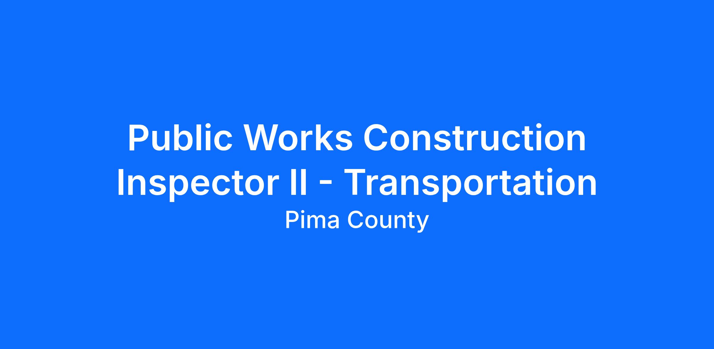 Pima County Transportation Department Construction Monitoring Division is seeking an experienced individual to join our fun and dynamic team as a Construction Inspector II for Transportation Capitol Improvement and Pavement Preservation Projects. Inspection duties will include the construction of bridge and drainage structures, utility installations, roadway pavements, signing and marking, ADA access structures, landscape irrigation, and vegetation installations. This role will inspect both locally funded and federally funded projects.