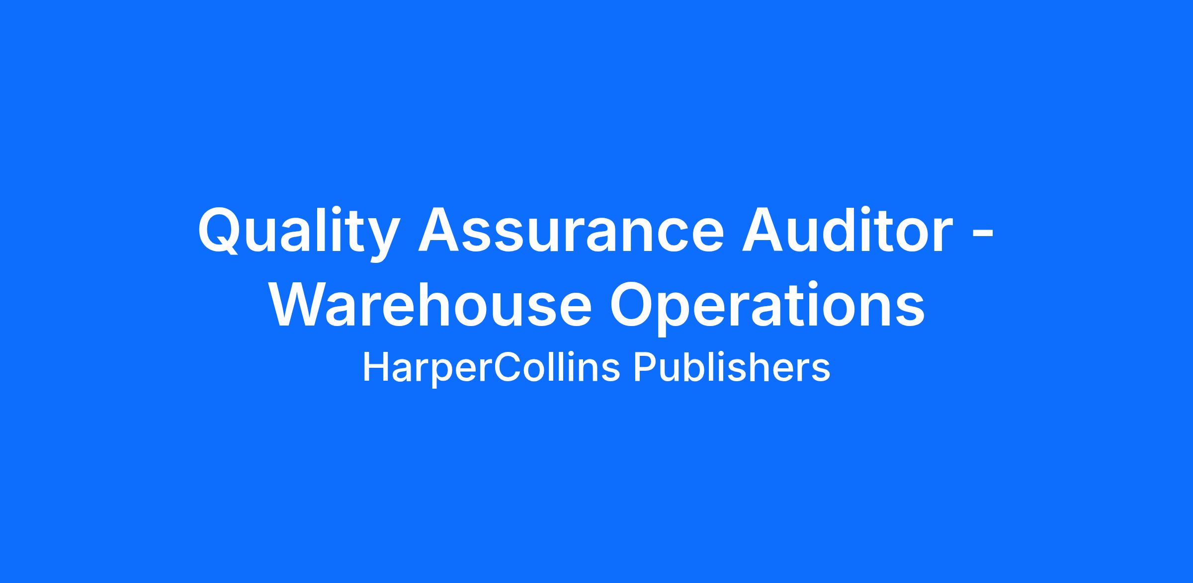Harlequin, a division of HarperCollins, is seeking a Quality Assurance Auditor - Warehouse Operations (1st Shift, 8:00am-4:30pm) . The Quality Assurance Auditor is a hands-on role that will be primarily on the warehouse floor, working side by side with teams across all departments to ensure every process runs smoothy and meets industry standards. This position requires a strong understanding of warehouse operations. This position will be responsible for identifying gabs, reinforce best practices, and promote consistency in quality and process execution.
