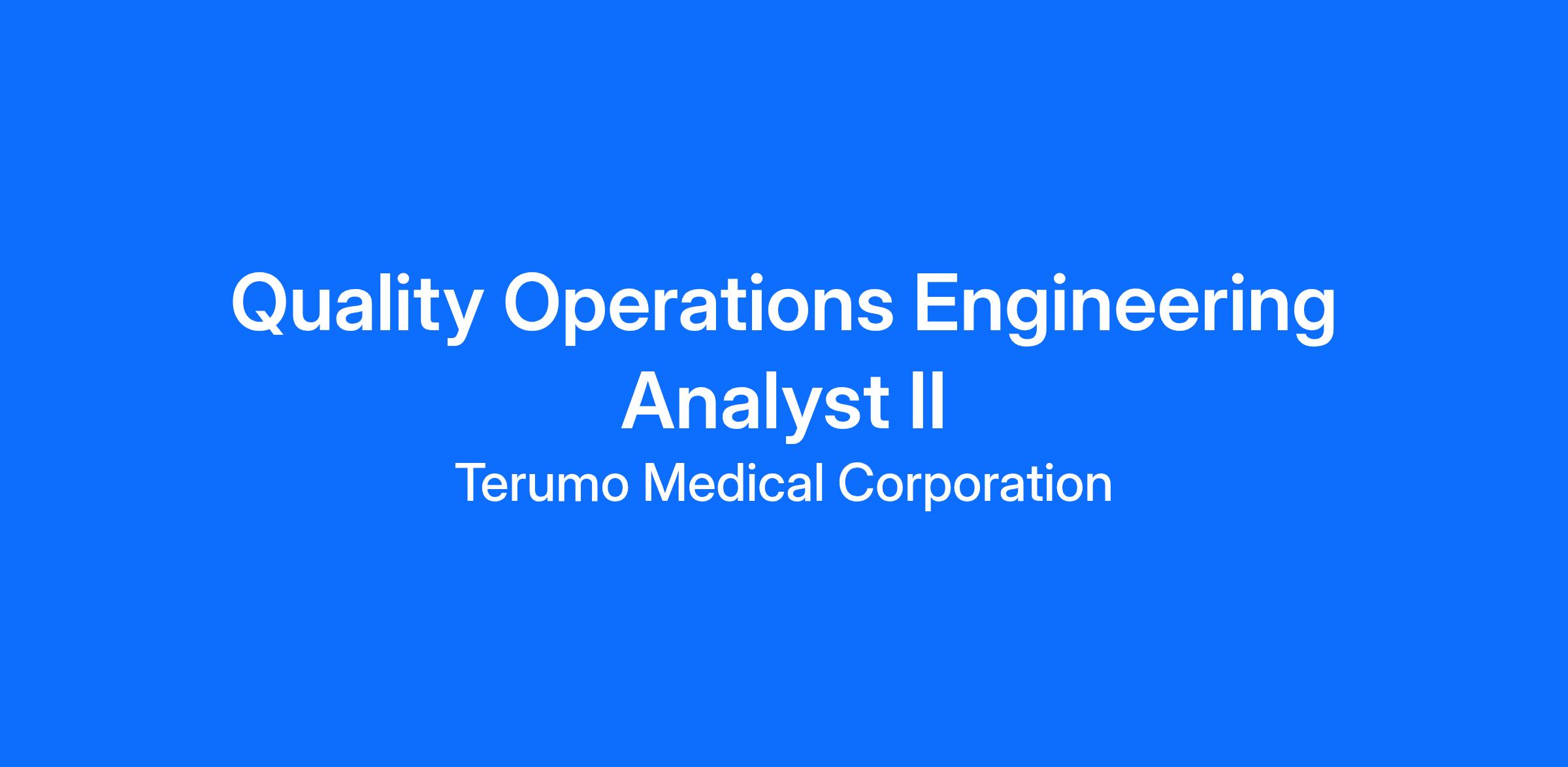 At Terumo we believe in the power of personal growth and will encourage you to get in the driver's seat - progressing in the direction you want to go by deepening your skills throughout your career. We want you to be bold, think outside the box, experiment, innovate and deliver what's next for quality healthcare. You will be part of a collaborative, respectful and resilient team of associates and leaders around the world, working together as partners to achieve more than you thought possible, providing real-world, impactful solutions for patients.