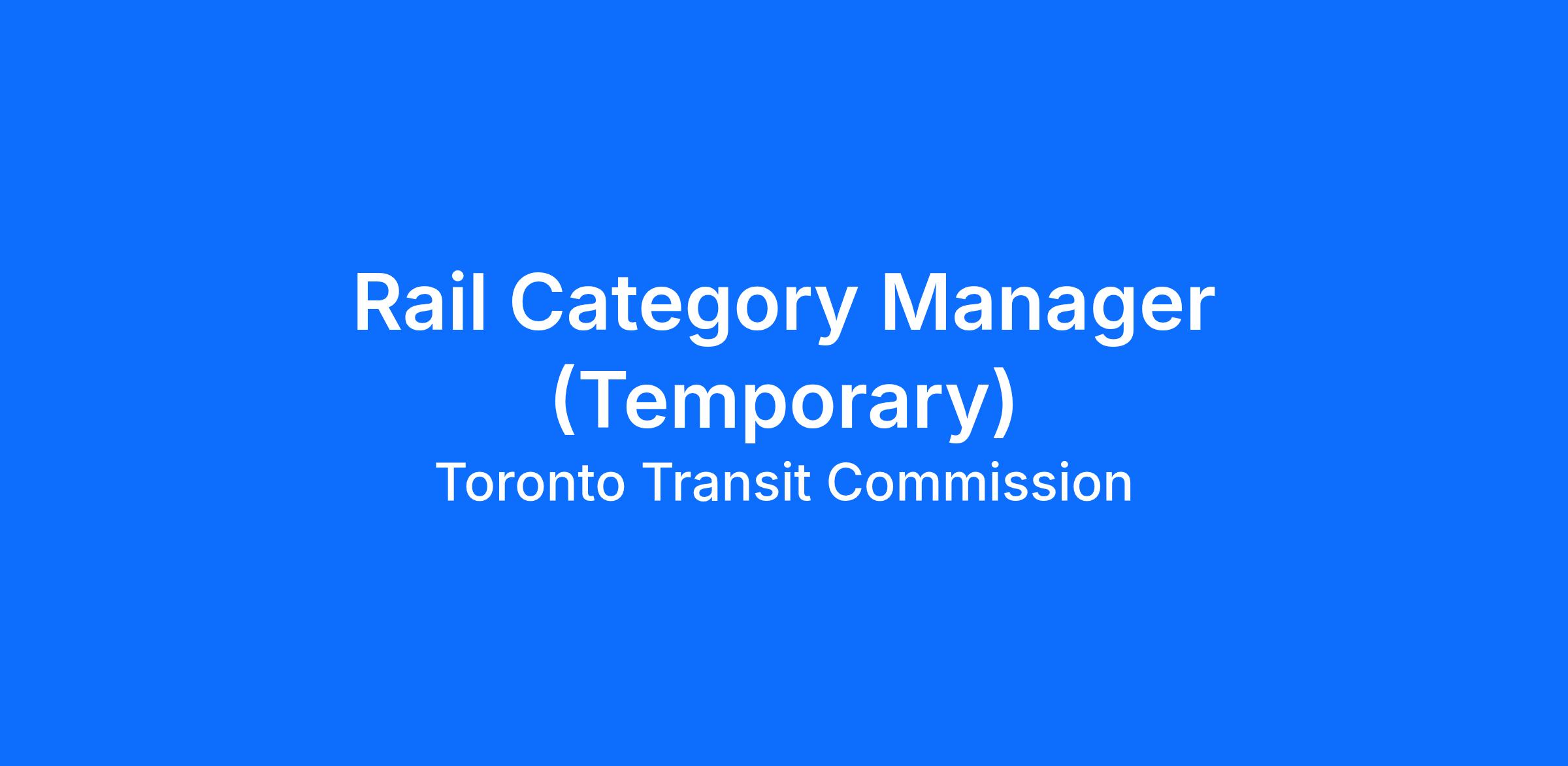 The TTC has an 18 month temporary opportunity within our Procurement and Category Management Department for a Category Manager in the Rail category.