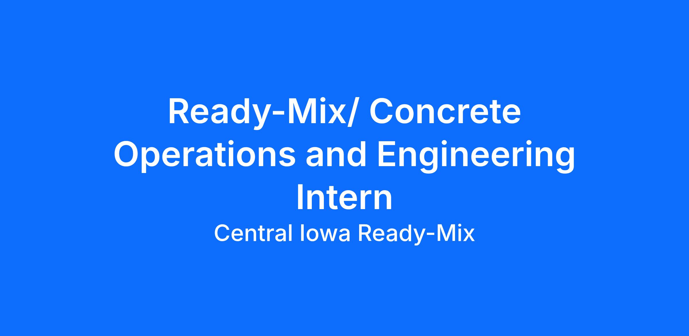 This internship provides real-world exposure to ready-mix operations and engineering applications—not just job shadowing, but meaningful hands-on experience. You’ll work alongside experienced professionals who will coach and mentor you throughout the summer.