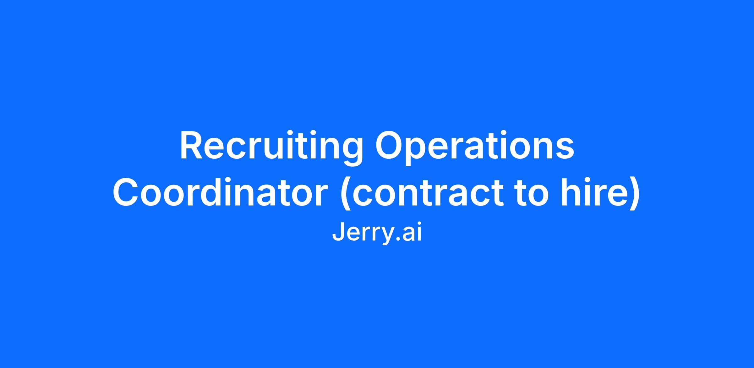 We’re looking for a high-velocity operator who doesn’t just execute tasks, but anticipates what’s next, removes friction before it appears, and helps the recruiting team move faster, smarter, and more effectively. You’ll act as a true force multiplier for our recruiting engine, your work will directly shape our ability to attract and hire top talent at Jerry.ai.