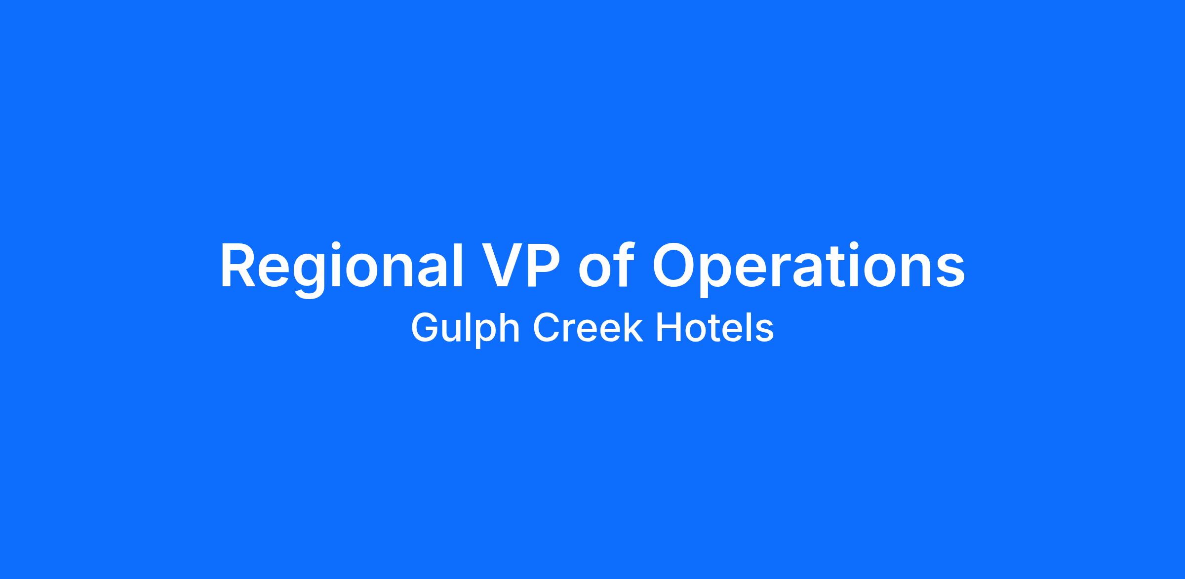 The Regional Vice President of Operations will assist in promoting Gulph Creek Hotels and assist with presentations to prospective investors and ownership groups.