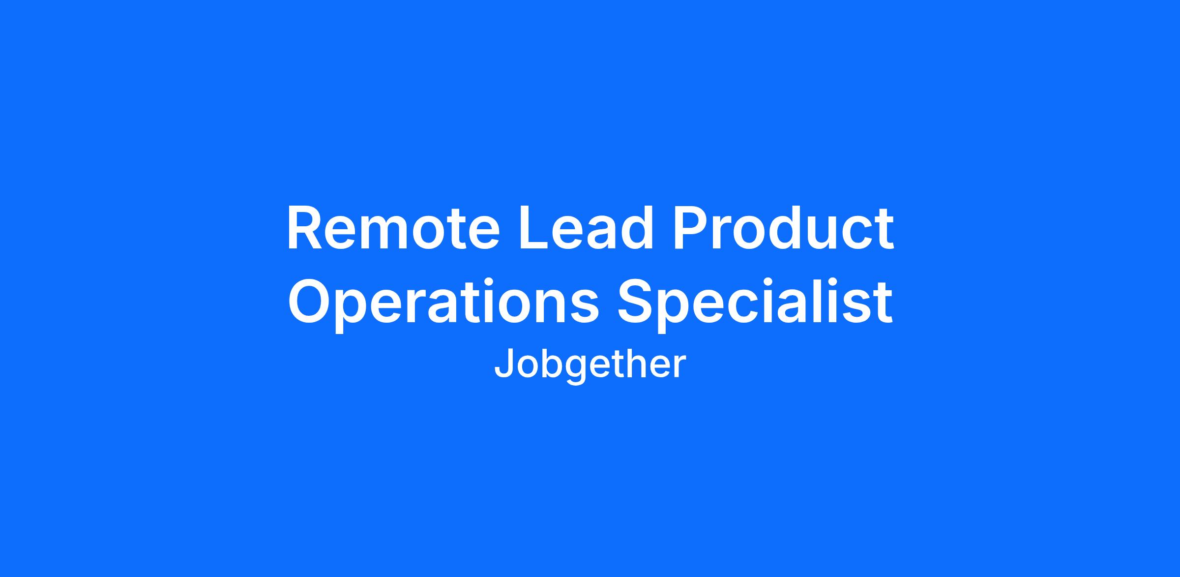 Remote Lead Product Operations Specialist
