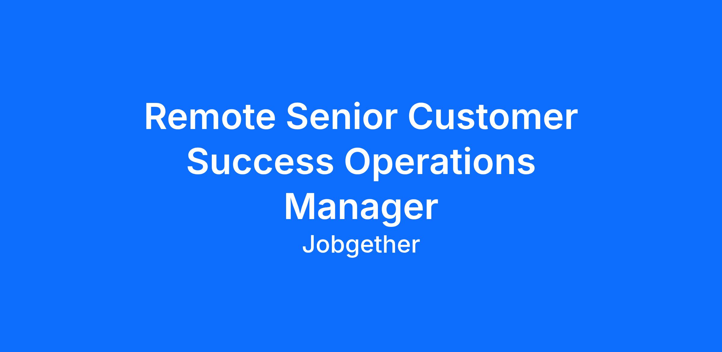 Remote Senior Customer Success Operations Manager