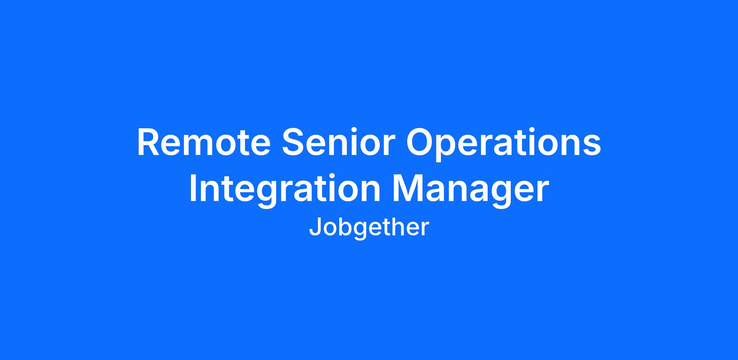 Remote Senior Operations Integration Manager