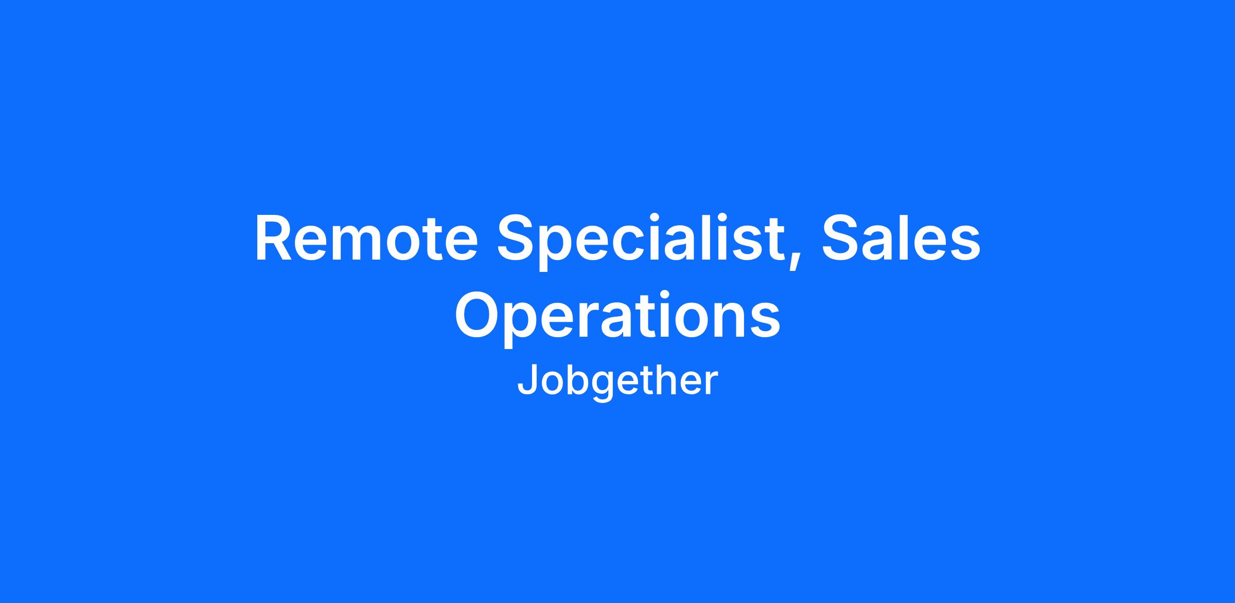 Remote Specialist, Sales Operations