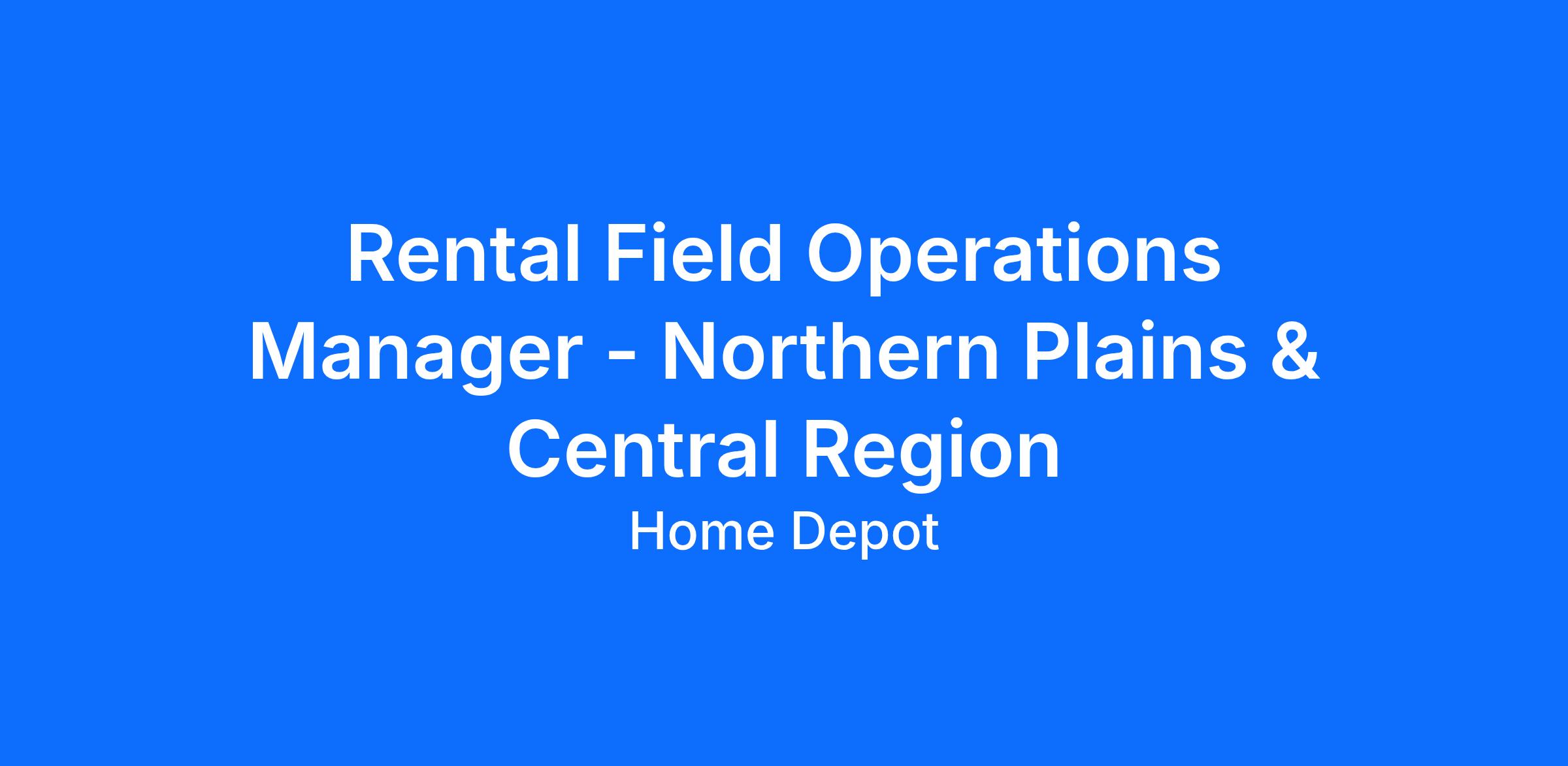 - . Drives overall operations of the region, including personnel management, equipment maintenance and repair, rental performance of the fleet, Home Depot store and associate relationships, equipment delivery, revenue and expense control, and any other key performance areas as defined by the Regional Rental Manager or Divisional Leader.